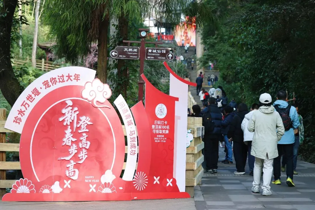 春节期间,青城山景区将开展一场燃动身心的登高挑战赛。大年初一至初三,每日挑战成功的前100名游客,可免费获赠限定奖牌1枚哦~