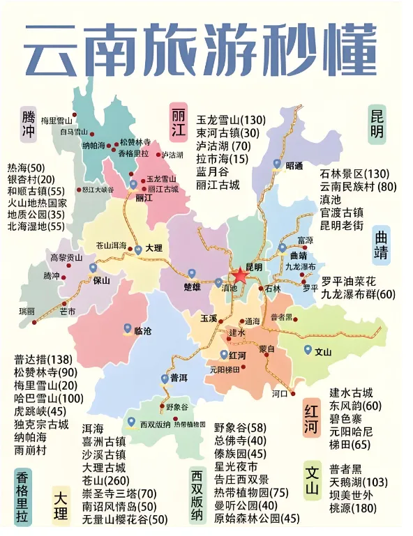 中国各省旅游景点---云南省 滇境躺平3日 把日子过成苍山洱海的模样“苍山不墨千秋画,洱海无弦万古琴”,一句诗行写尽滇境清欢;云南谚语有云“栽花要栽山茶花,交友要交彝家娃”,藏着彩云之南的热忱。古人云“滇中惟多山,山水皆画卷”,这里的美,是洱海波光、古城慵懒,是“春风得意马蹄疾”的自在,更是烟火藏于山水间的治愈。以诗为引、以谚为韵,新手友好,3日躺平不绕路,解锁滇境松弛感。