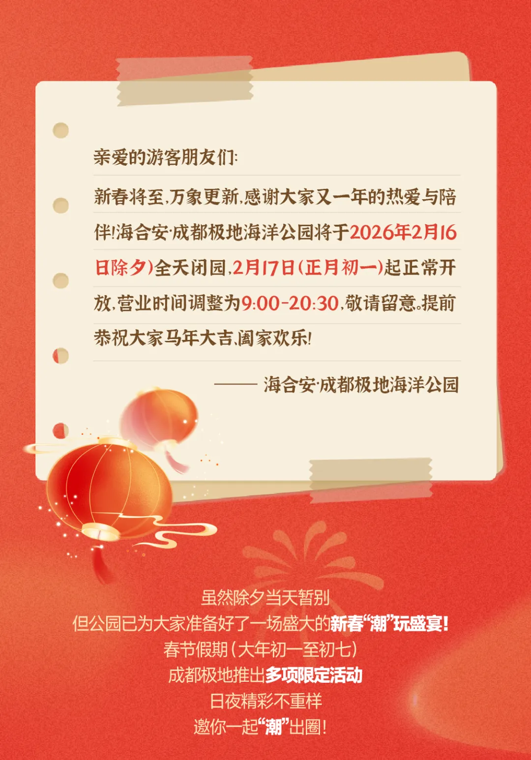 于2月16日(除夕)当天闭园/闭馆