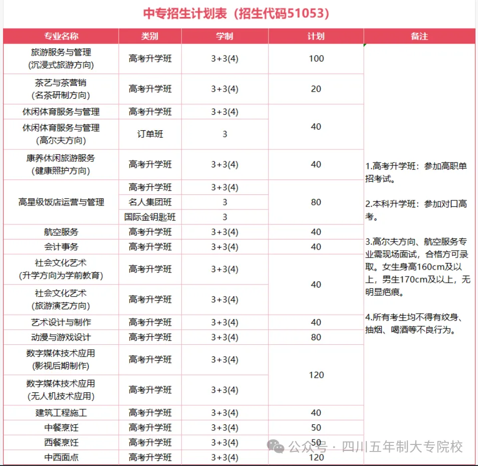 2025年四川旅游学校开设了五年一贯制大专班、本科升学班和三年制中专班。