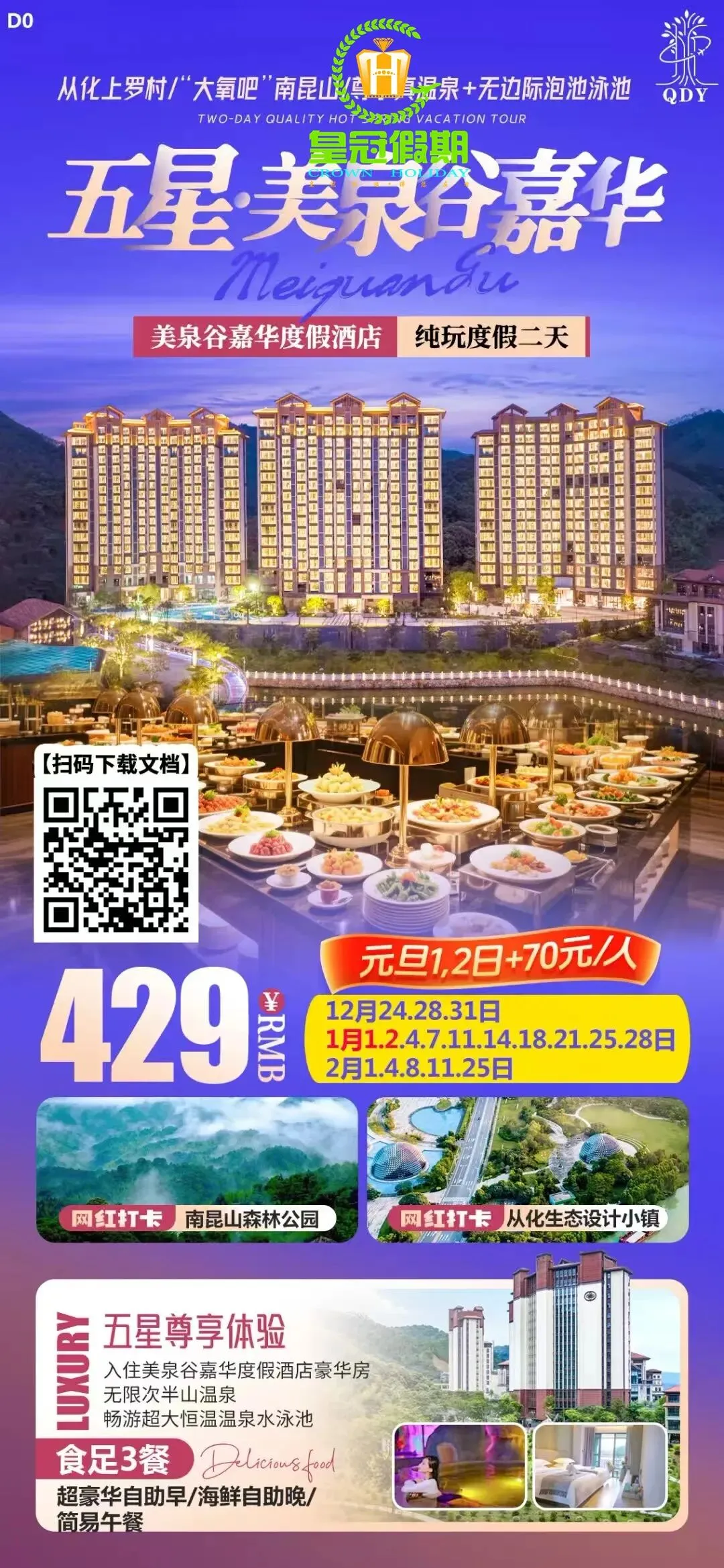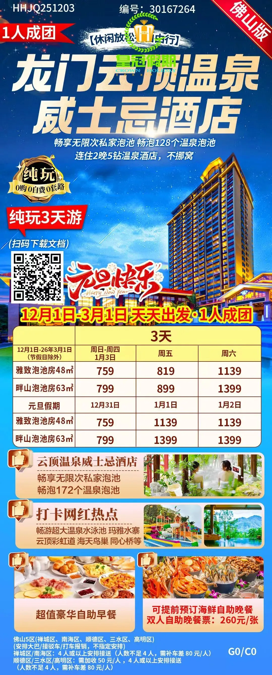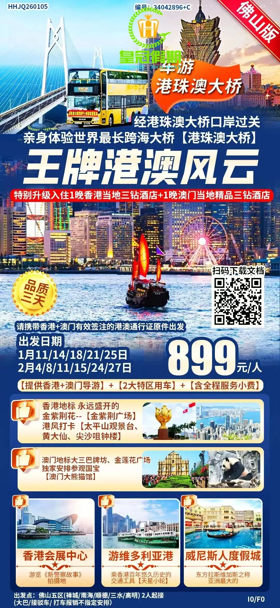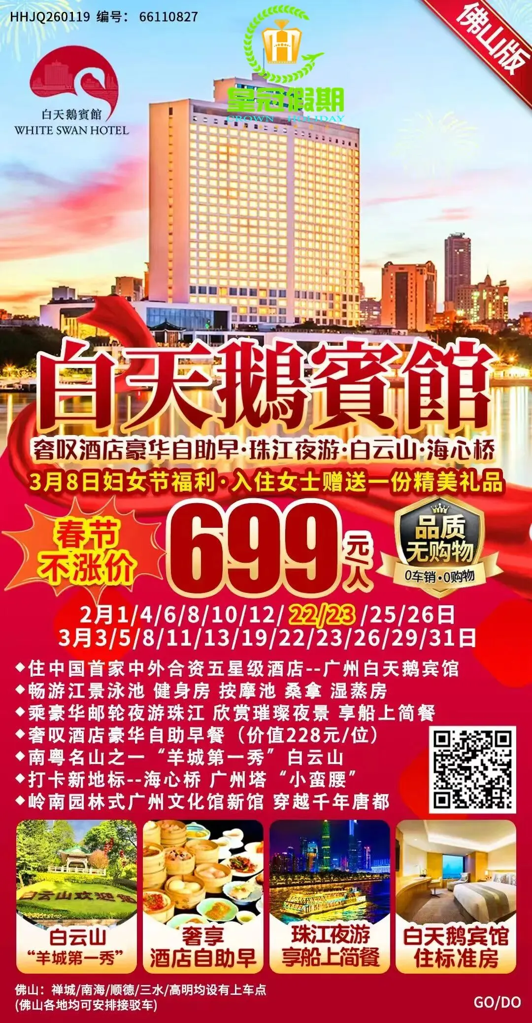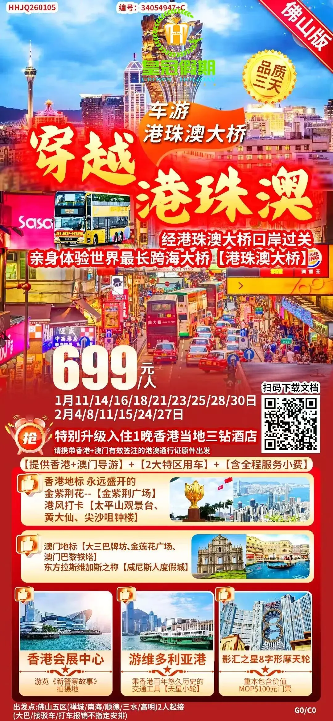 ※ 或关注佛山皇冠假期公众号,点击微官网, 搜索相应旅游产品。