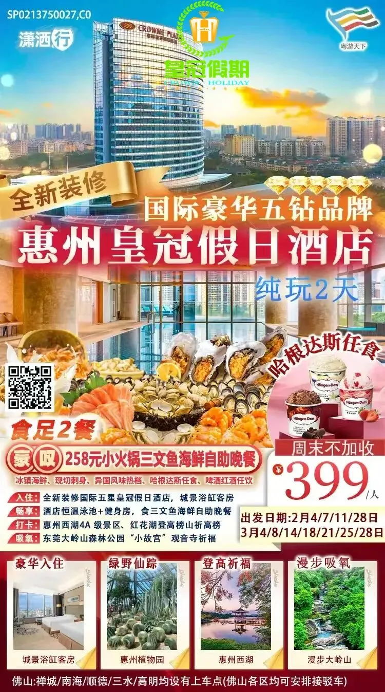 可咨询以下皇冠假期全市各大门店