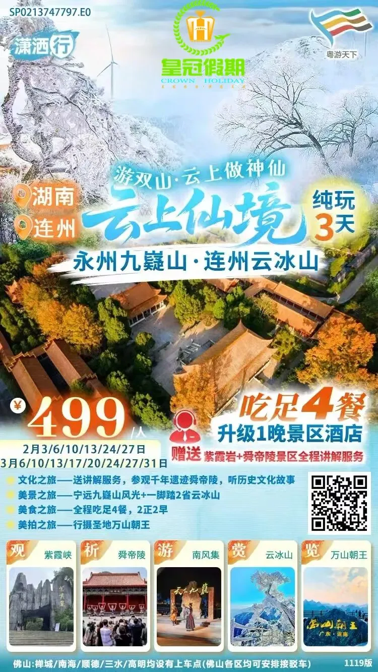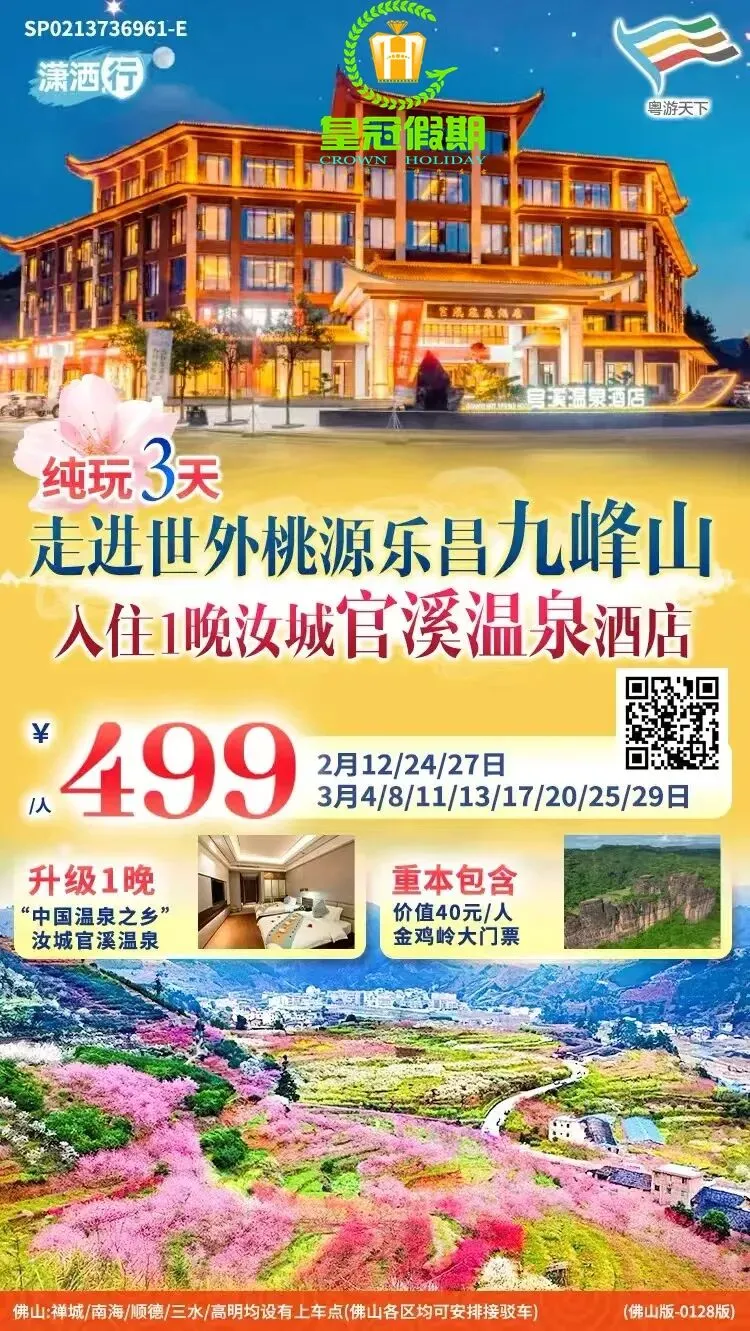 【2月】省内旅游线路推荐~点击蓝字关注【佛山皇冠假期】