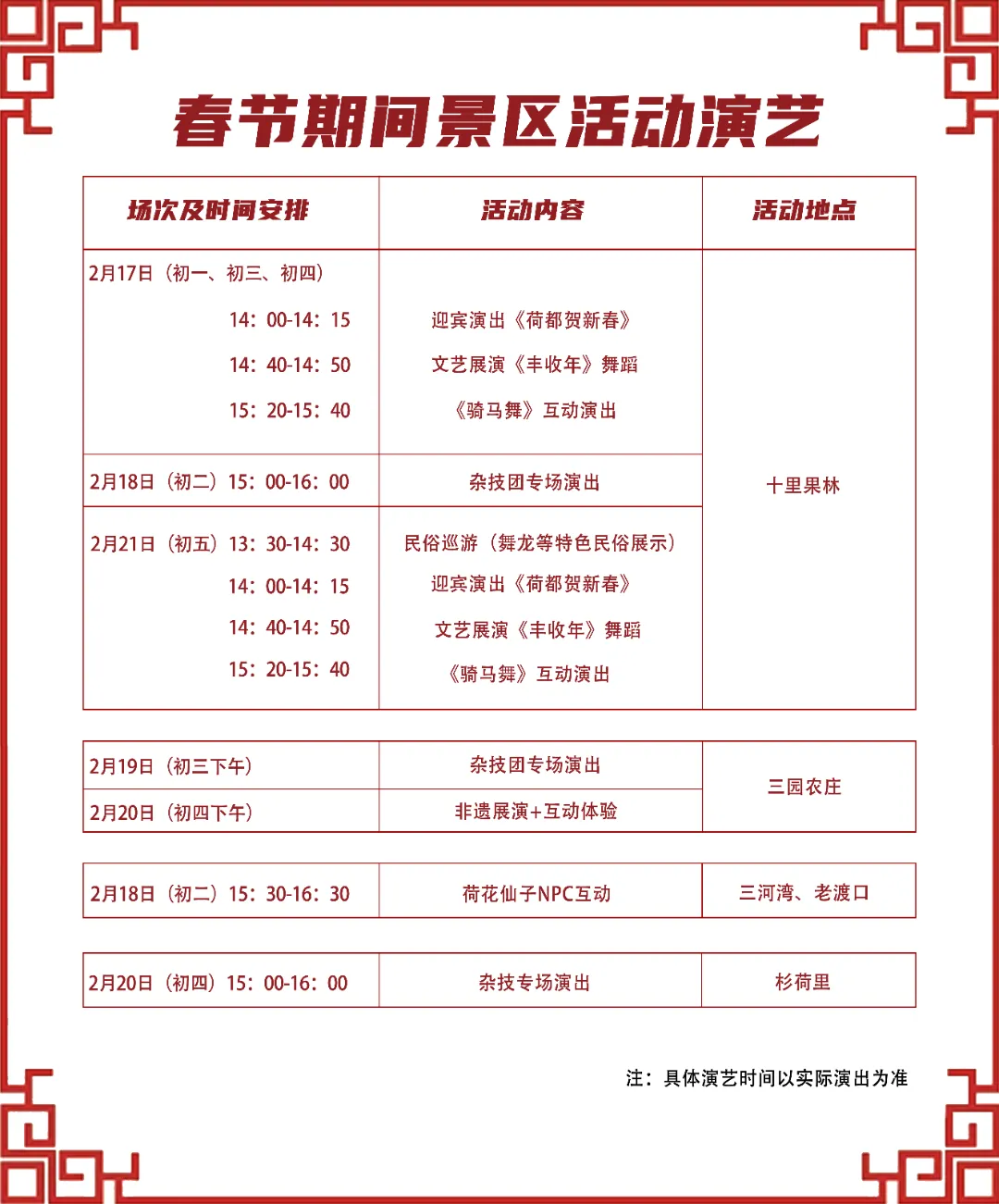 👉我们为您贴心整理了春节景区活动演艺时间表,赶紧收藏起来,合理安排你的新春行程吧!