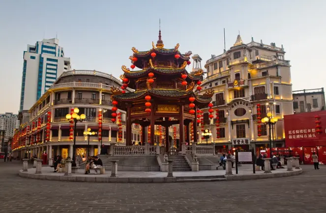 这些建筑并非静止的展览品。如今的小公园开埠区已被活化,划分为非遗、民俗文化、特色百货等多个主题街区,现代的商业活动在老建筑中延续,为影像记录增添了流动的生机。