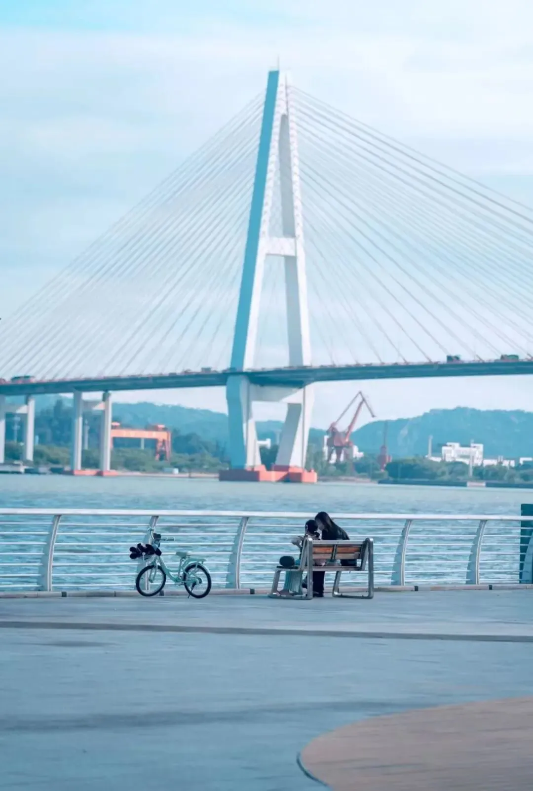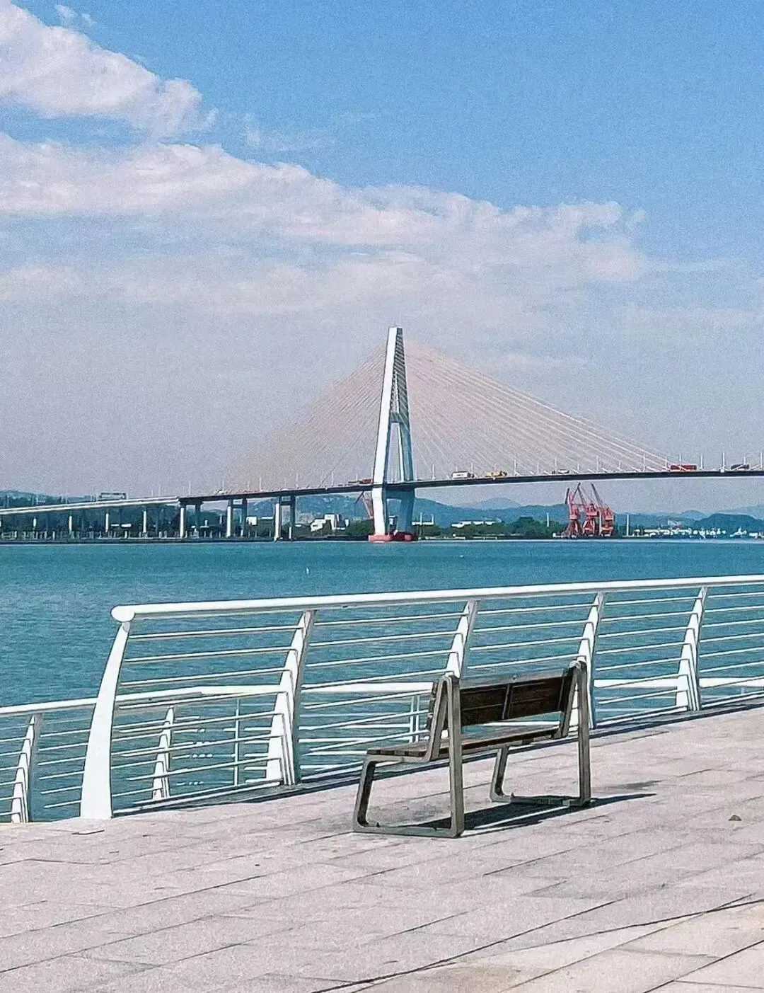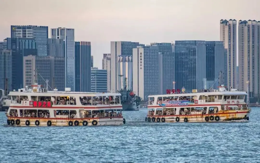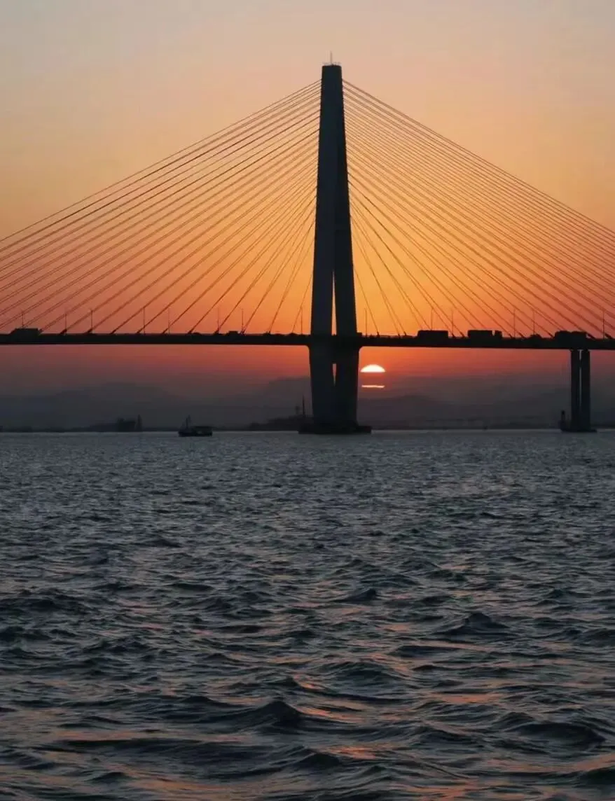 从码头望出去,落日的余晖为天空和海面染上从金黄到粉紫的渐变色,远处礐石山的轮廓、礐石大桥的钢索线条,与近处航行的渔船、往返的轮渡,共同构成一幅动态的滨海水墨长卷。