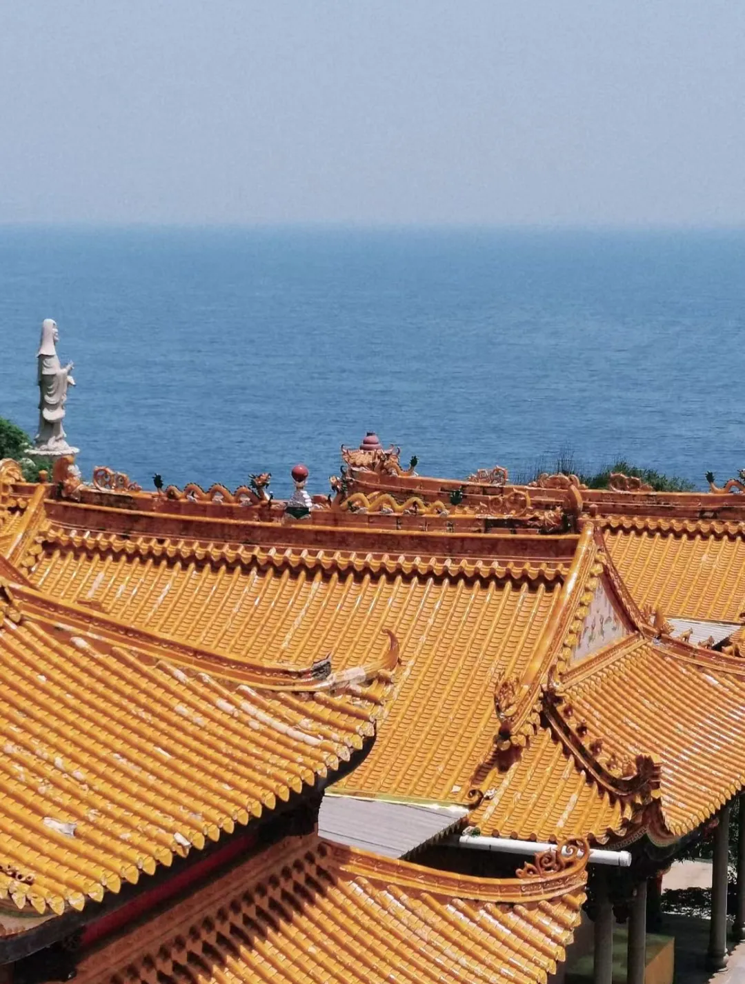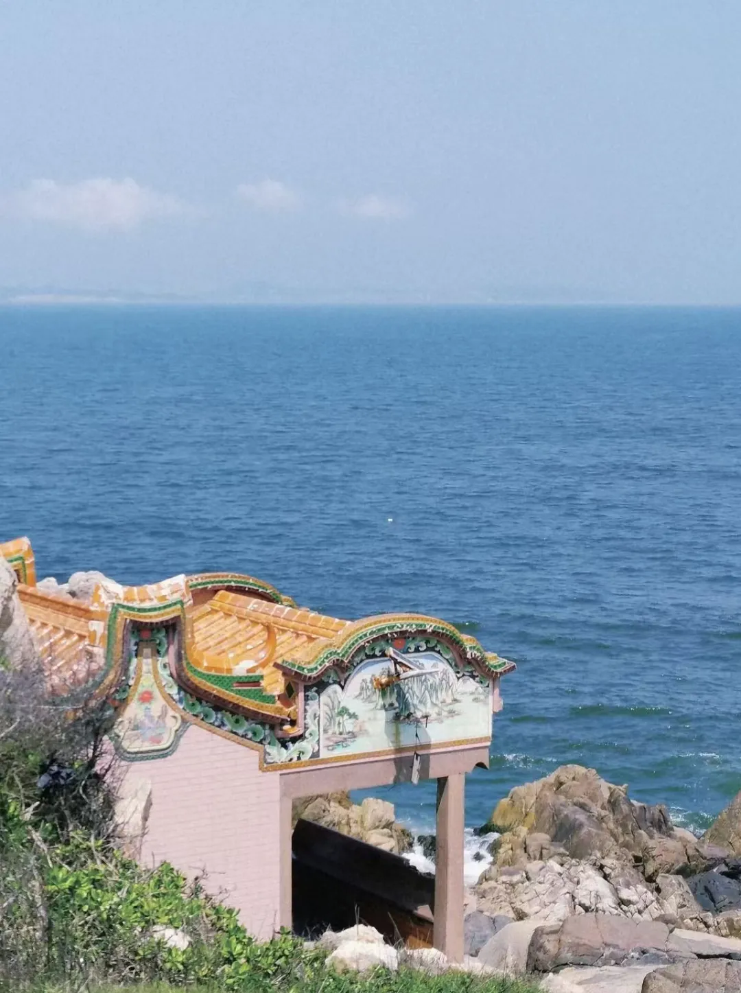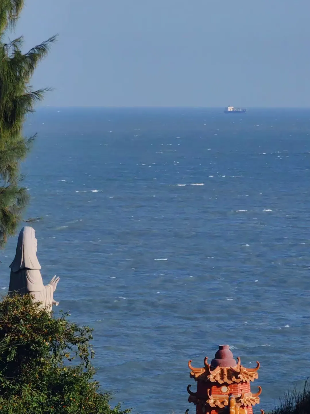 站在寺前的观景平台,视野极为开阔。眼前是无遮无拦的宽阔海面,天气晴好时,能看到归港的渔船点缀在碧波之上。