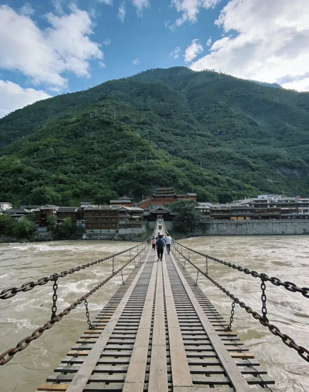 6、泸定桥景区 (4A):课本上的飞夺泸定桥,就是位于318国道上泸定县,作为红色景区,爱国主义教育基地,必须来学习这段历史,泸定桥始建于清朝康熙年间,至今已有300多年的历史,桥身由13根铁链组成,下边9根作为底链,两边4根作为扶手,桥全长103.67米,桥宽3米,由12164个铁环组成,13根铁链重达21吨。当我踏上这座桥时,脚下是汹涌的大渡河,在桥上一边走一边回忆那段历史,亲身体验,方知课本描述不及万一,即便现在加固了木板,汹涌河水依旧让人胆战,可曾想22位勇士,就是在这13根铁链劈开了一条胜利的道路,向勇士们致敬。