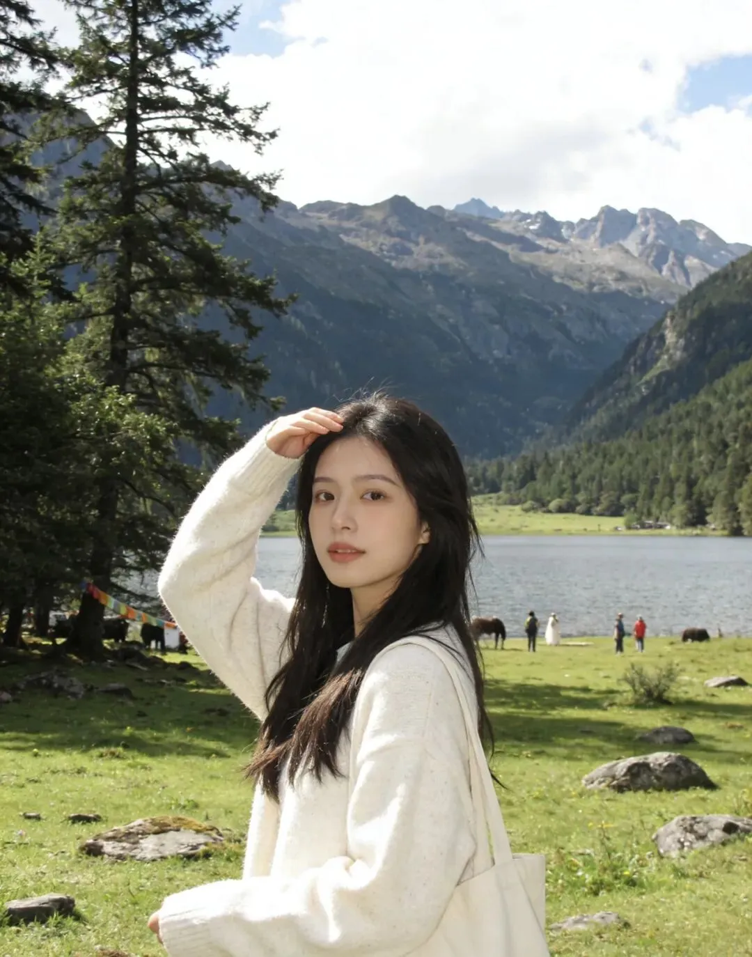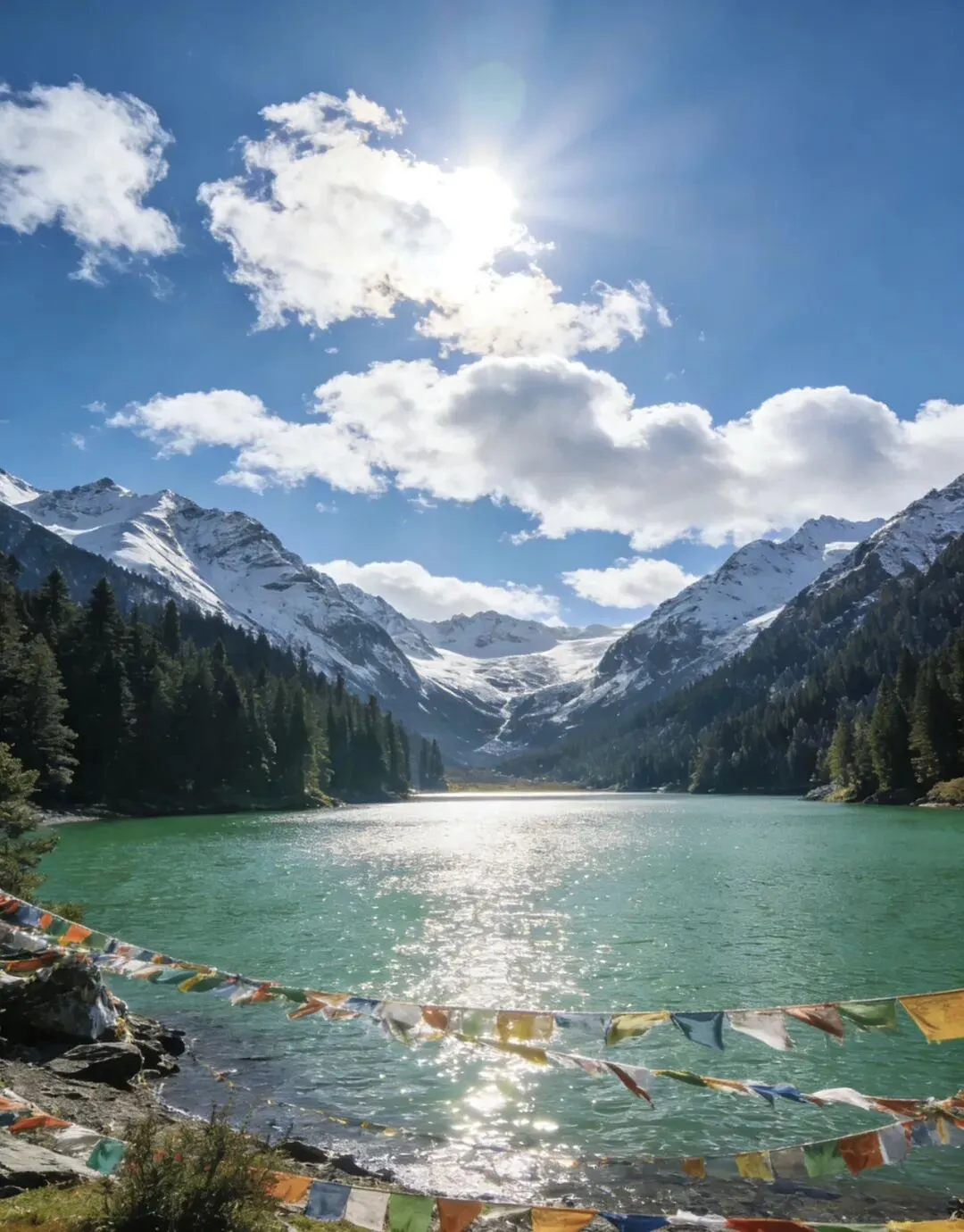 玉龙拉措地处新路海自然保护区内(省级),位于317国道808公里处,由冰川掘蚀形成,湖水靠冰雪融水和天然降水补给,是典型的高原冰蚀湖,南面晶莹的冰川从海拔五千余米的雪峰直泻湖滨草原,北面有牧草丰茂的措巴村牧场,东西坡有密布的川西云杉、方枝柏,四季景色迥然不同,周围生态原始、完整,自然风光极为壮美,是集文化体验、户外观光、生态观光于一体的世界级雪山公园。