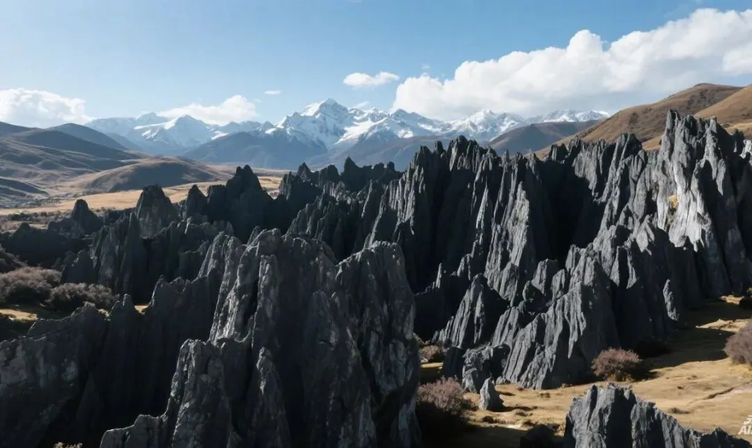 8、道孚墨石公园景区 (4A):川西网红打卡地,墨石公园位于四川省甘孜藏族自治州道孚县八美镇,是国家4A级景区,以其独特的糜棱岩石林地貌闻名,被誉为“中国地质百慕大”和“异域星球”。
