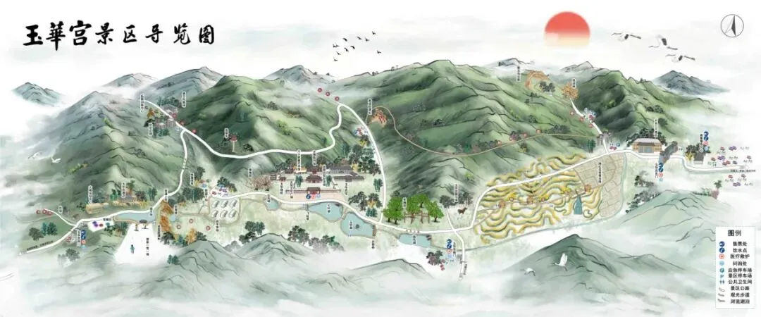 包茂高速(G65)公路至“太安S106”出口下高速,沿玉华宫景区导示行驶500米即到。请在各大导航中搜索“玉华宫景区”,按照导航线路行驶至玉华宫游客服务中心,并将车辆统一停放至游客服务中心前广场。