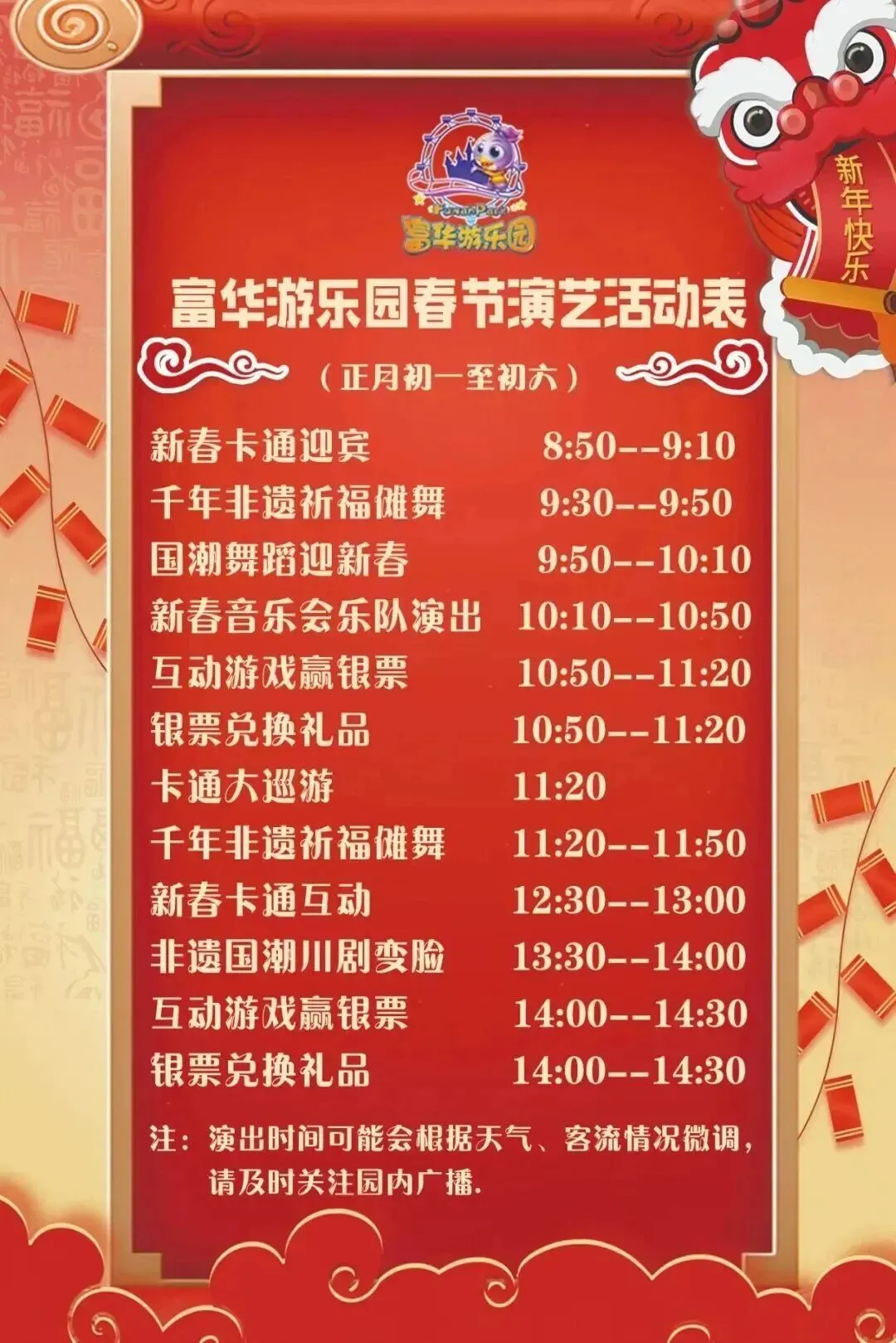 一、部分民俗表演、景区活动时间可能因天气、客流微调,建议出行前关注官方最新通知;