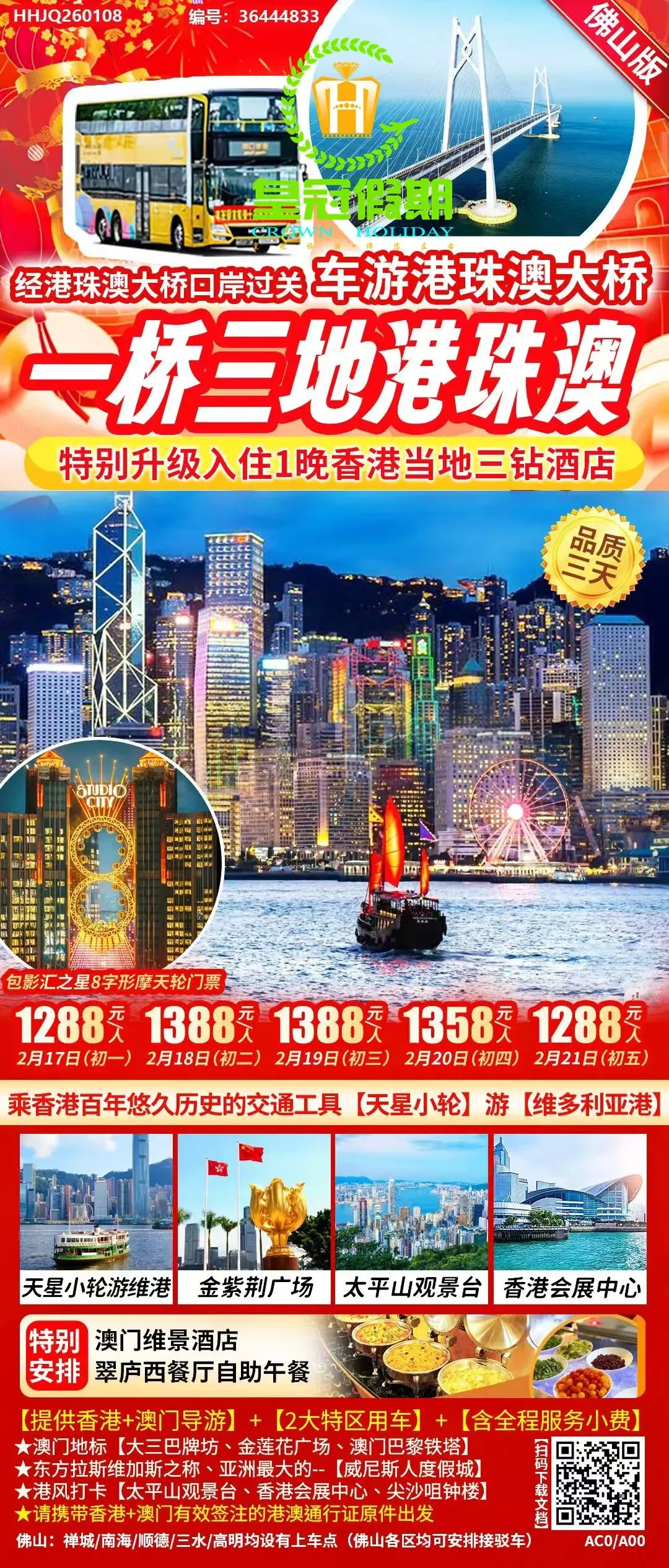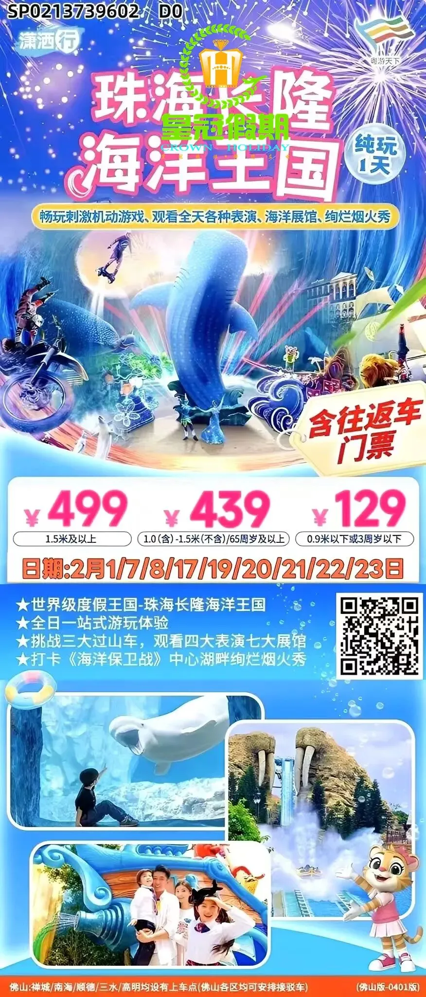 ※ 或关注佛山皇冠假期公众号,点击微官网, 搜索相应旅游产品。