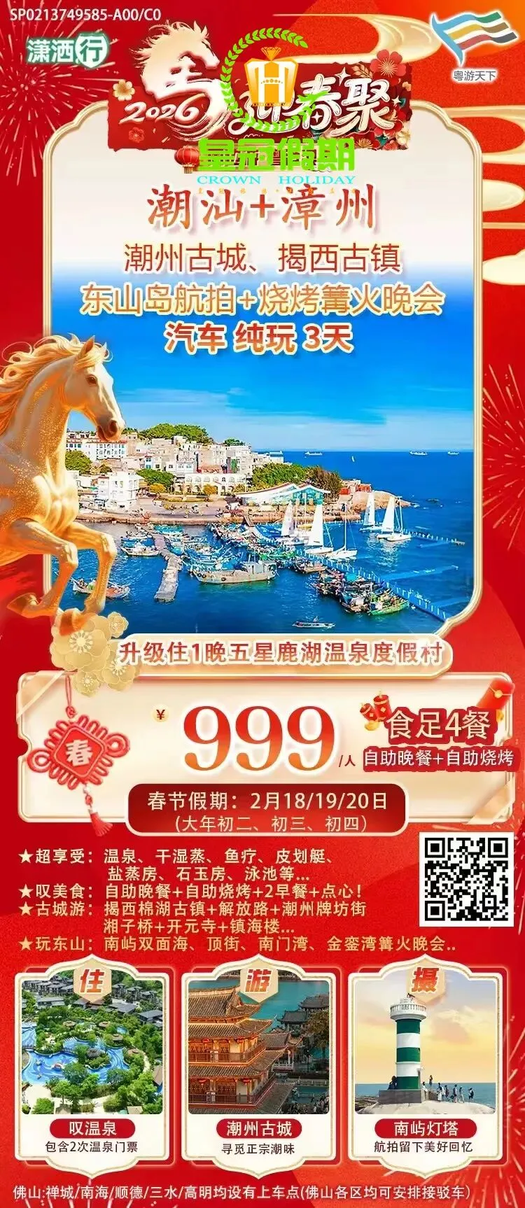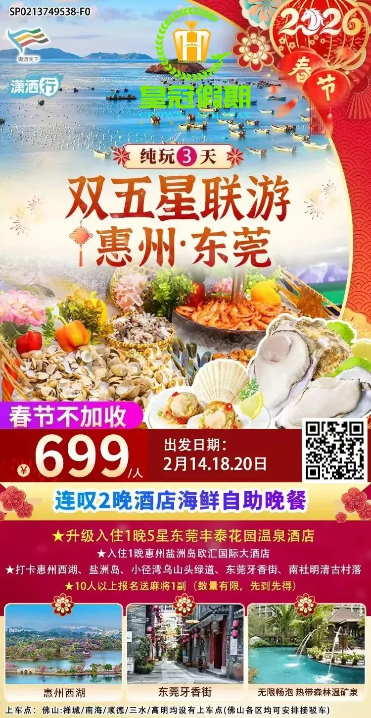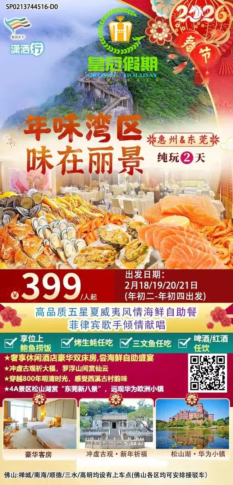 【春节假期】省内旅游线路推荐~点击蓝字关注【佛山皇冠假期】