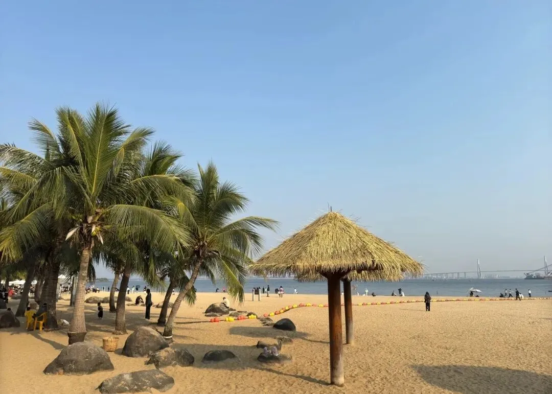 金沙湾观海长廊被誉为湛江的城市客厅,是国内少有的“城在海中,海在城中”的景观。细腻白沙绵延舒展,椰林随风轻摇,碧海与蓝天无缝相接。白日里看船只点点驶过,傍晚时分,夕阳将海面染成金红,晚风带着海水的温润,漫步、骑行、踏浪、看日落,随手一拍都是滨海大片,浪漫又治愈。