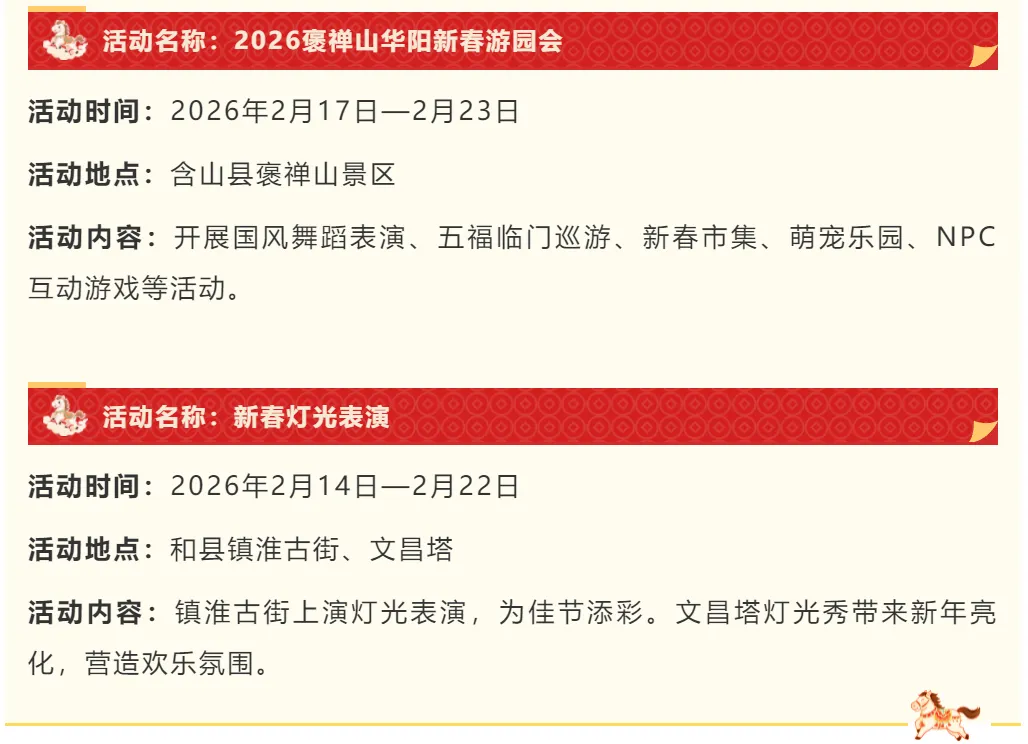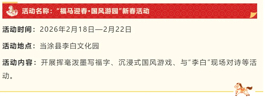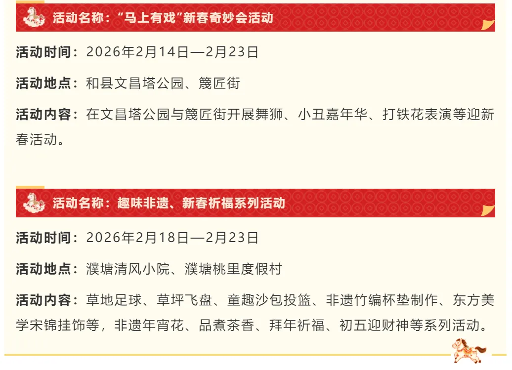 金蹄踏春来,年味渐浓时!2026年春节假期,马鞍山准备了超多精彩的文旅活动,陪你热热闹闹过大年!
