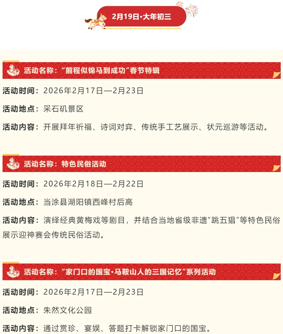 2026春节马鞍山最全免费攻略丨景区+年俗活动+公交+停车指南