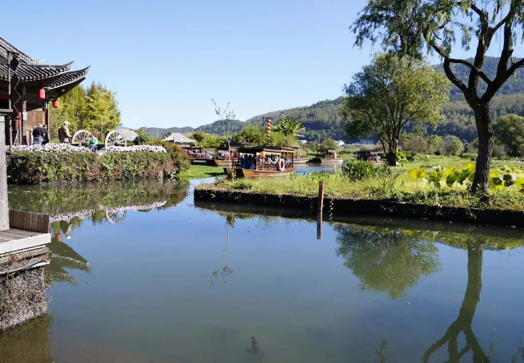 古镇面积不小,民居错落、田园铺展、湖泊澄澈,还有集中的小菜街,游客可按需选择游览方式:或是乘坐景区观光车穿梭街巷,或是徒步慢行,沉浸式感受古镇风情。