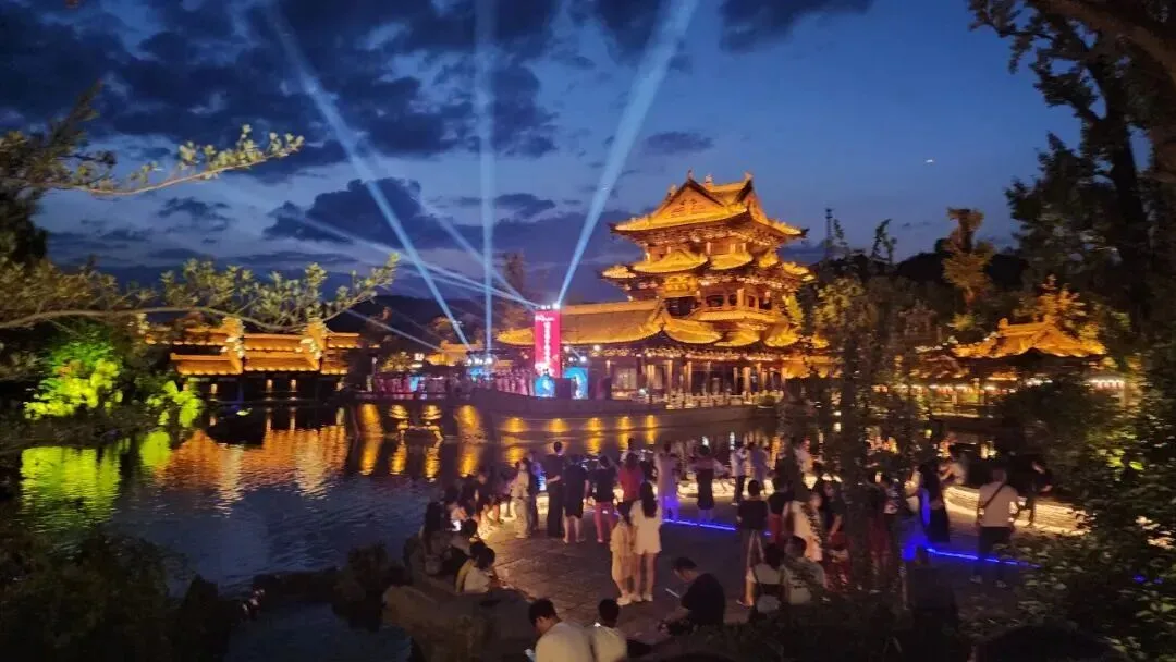 华灯初上,诸葛街灯火璀璨,漫步其中欣赏夜景,入住古镇特色民宿,体验宁静的三国之夜。