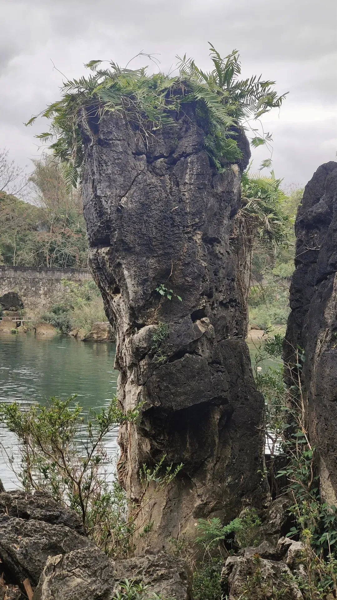 在来往景点的路上我景区里的小河边,我们在旁边的田地里看到了好多成群的小石头,不知道这些算不算是石芽🪨。