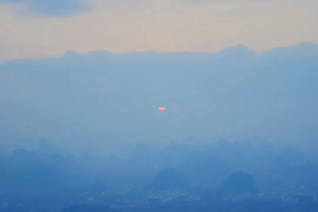 我们去千里江山图看日落的时候,正好日落的方向有很厚的云☁️,所以你看到了半个太阳。