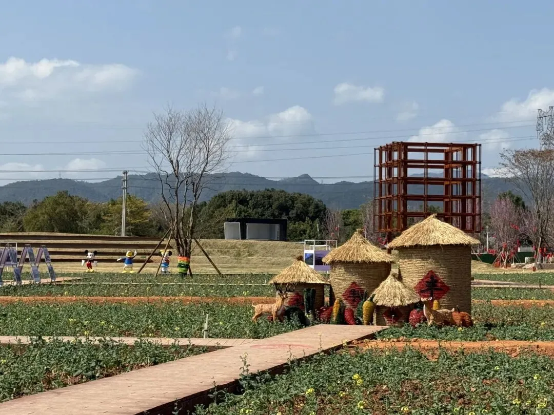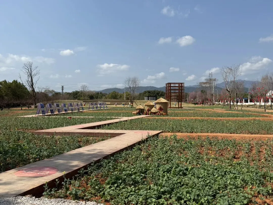 沿着田野道路一直走便是阶梯式草坡舞台 舞台并非传统封闭式搭建,而是利用自然缓坡打造的阶梯式草坡舞台。层层递进的木质台阶嵌入青黄相间的草坪中,形成错落的观演/展示层级,既作为舞台背景,也可充当简易观众席,实现了与田园环境的无缝融合。 新年期间勤睦家源还有新年活动可供大家来游玩。