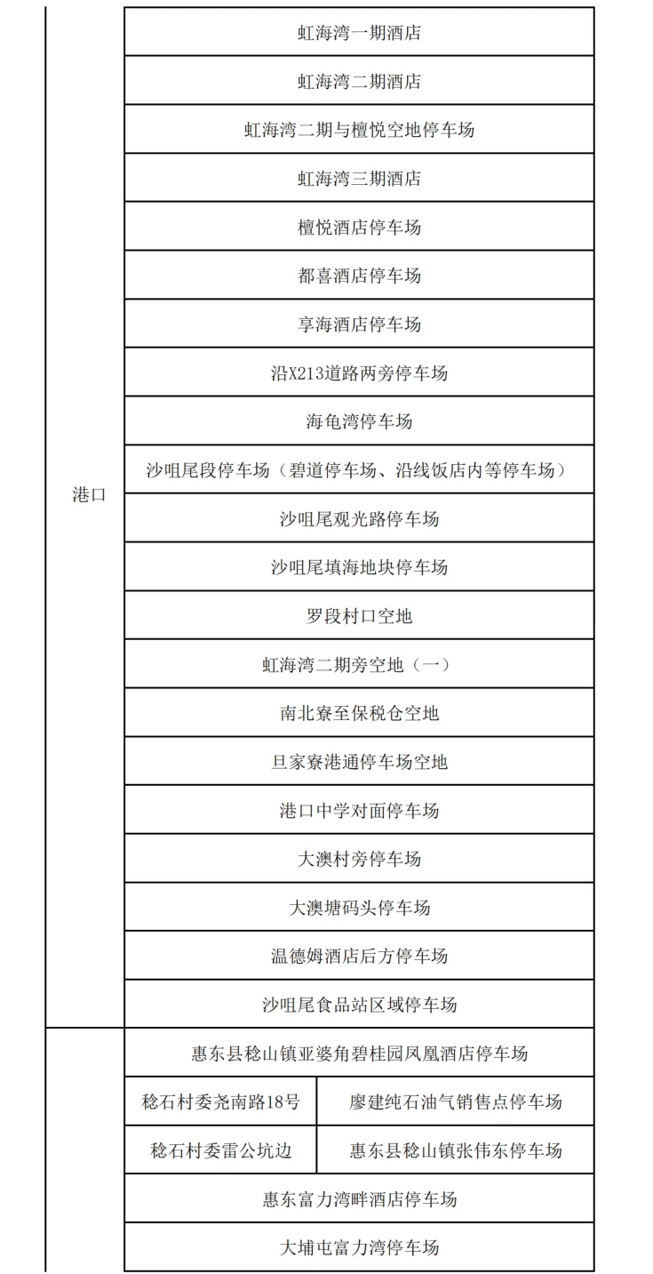 地点:惠城区人民政府正门两侧地面停车场、惠城区行政服务中心地面停车场、西湖大剧院地面停车场、一场三馆(惠城区文化馆、图书馆、青少年宫)地下停车场。