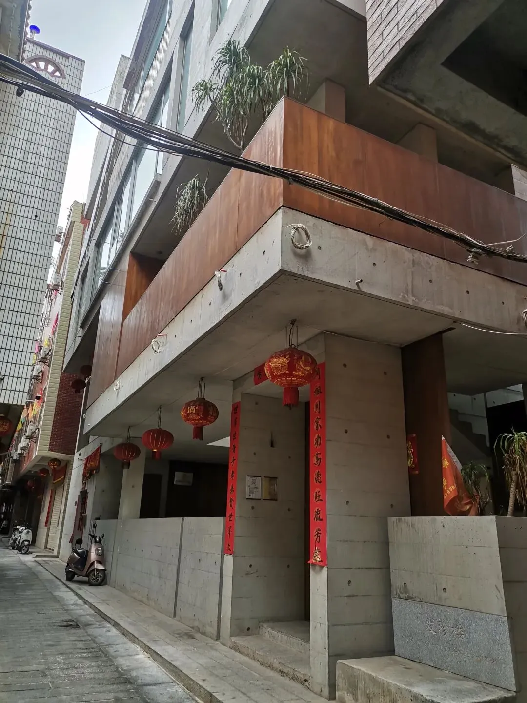 还是回到了我刚才徘徊的那个巷子,看来房子是在这里无疑,可是哪座才是呀?为啥我找不到呢? 每个房子都不像图书馆,也没有挂牌,我走完巷子也没找到。 没办法,继续问人。一个看似农民工的大叔正在搬砖,考虑到简单直接,我上前询问:请问这里有个图书馆在哪里?没有说“母亲的房子”。 这个大叔用手向我身后一指:“里面”。 不对呀,我和他说我刚从那里走来没看到呀。 “哎呀,就在那里,你走进去不到50米”。 我还在迟疑,他向我强调“民房”!声音里有些无语的不耐烦。 看来这位大叔比我懂他更懂我,知道我一定把图书馆想的太图书馆了。 我再次返回巷中缓步察看,这咋跟玩连连看一样,到底是我眼拙还是脑笨? 我又向唯一一座看着有点可能的大房子打量去,正撞上院子里矮坐着的一个人的目光。 我这样三番五次窥探私人住宅真是欠佳,我尴尬地连忙问图书馆在哪里?以打消他的顾虑。 我的这副可疑之举果然不待见,院子主人都不愿吱声,直接拿眼神往我身后一扬。 与此同时,我恍然大悟,就是这座房子,这座房子在我第一次进巷的时候曾看到过,为什么后来都没看到呢? 因为它没有墙体,又是水泥色,记忆第一时间便判断是在建中或烂尾的建筑。所以后面无论在巷中转了多少次都目中无它。