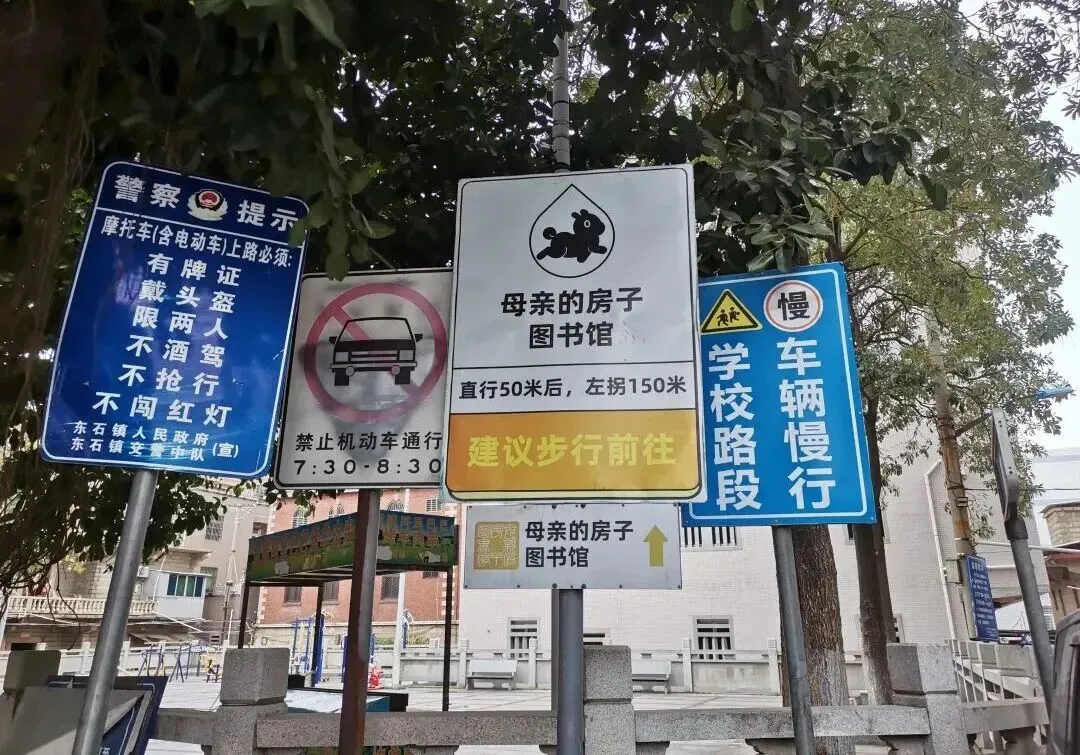 而我因为他的《故乡三部曲》:《皮囊》《命运》《草民》和《我人生最开始的好朋友》,知道了在中国的地图上有个叫东石镇的地方,它沿海但不直面海。 在那里,他们信奉妈祖,五步一堂,十步一庙,举头三尺有神明,神祗与世人为邻。 还有一个坚硬的生命—阿太,一位躯体和生命一样坚硬的女性。 哪怕她老得都快记不清岁数了,也能用她佝偻得快要贴近地面的身躯挑起两个箩筐,装上她的衣物和日常用品,走上一二里路去看黑狗达。 有时候,她的箩筐里居然还带来一盆绿植,或两只兔子或一只狗或一只鸡。 真是让人惊叹又神奇! 去东石镇那天,我早早起来,从泉州鲤城区转换3部公交抵达,全程不到3小时。 本来我想先到海边再到“母亲的房子”,结果坐过了站,只得先去“母亲的房子”了。 一下车我便打开导航。我以为“母亲的房子”毕竟已是图书馆了,好歹也是当地的地标建筑,应该是在位置显眼的街边吧,结果,高德显示居然在居民区的小巷里。 还没走几步,高德就显示到了目的地,但是导航却依然在提示怎么走。 我找了一圈确实也没找到什么图书馆,都是居民住宅。难道“母亲的房子”是在某栋建筑的内部? 跟着导航我走出了巷子,发觉不对,我离目的地越走越远了。我又折回去,又再次打量了那几个住宅,确实都是私人住所,跟图书馆没有一点关系。 我在巷子里的东张西望被一位阿婆锁在目光里,她对我这个可疑的外地人露出不太友善的表情。算了,我怕遭到一句听不懂的呵斥,还是听导航的走出去再问人吧。 走出居民区来到大街上,我向一个路边的早餐店老板询问:“母亲的房子”图书馆怎么走? 果然,在这里大家应该都知道这个房子,他摇手一指:往那里向左拐,再走到巷子里。 和导航指示又不一样,但我更愿意相信当地人,走到路口,终于看到“房子”的指示牌了,按照指示牌的指示,向前,左拐。