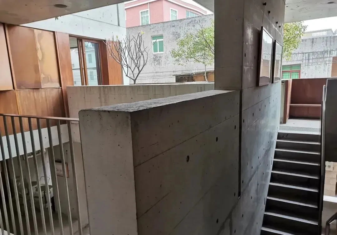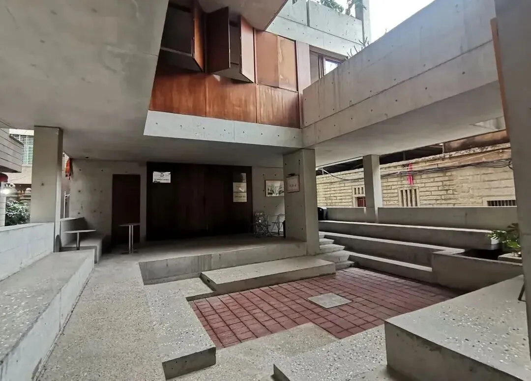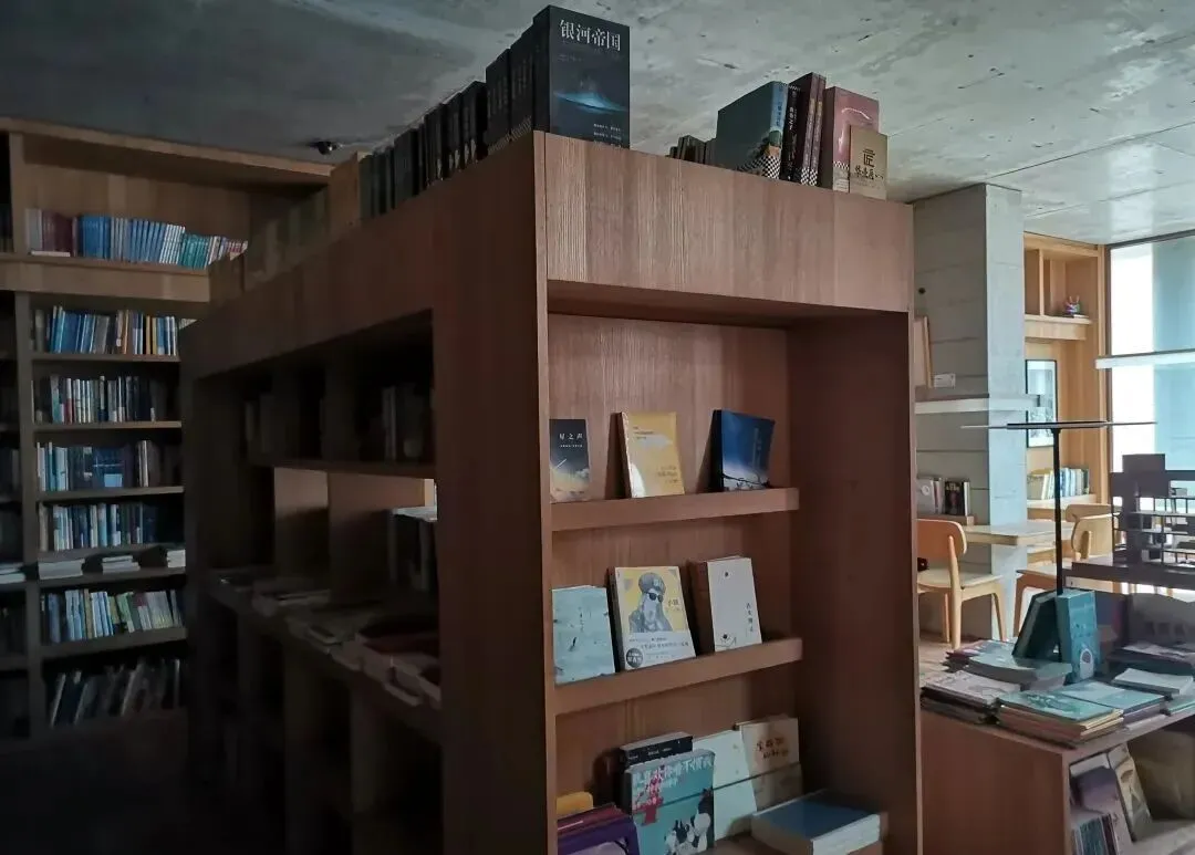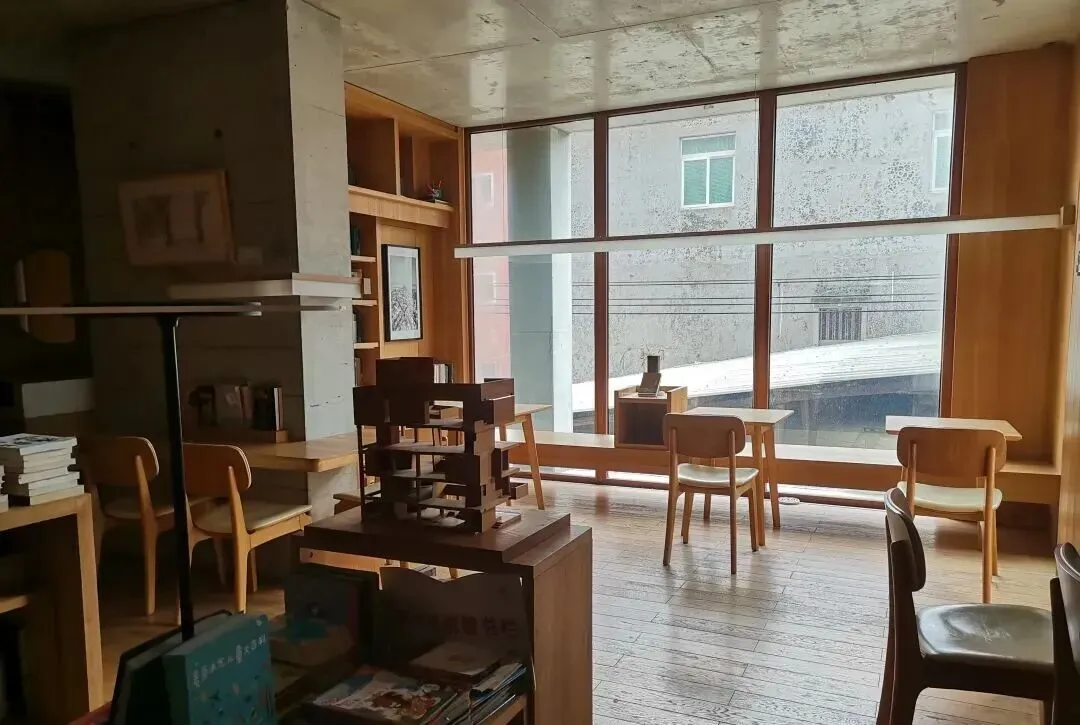 唉!真是可笑,果然最危险的地方就是最安全的地方,最隐蔽的地方就是眼皮底下。 这回仔细打量,除了没有完整的墙壁,其实还是挺文艺的。房子并没有挂出“母亲的房子”或图书馆等字样的牌子。 推门而入,一楼是个敞亮的开放式空间,几张随意摆放的桌椅,还有一个咖啡间,一个水池一棵香樟树。 楼梯上二楼就是图书馆了,两个狭长的过道对应两扇门。过道上散落着一套旧桌椅。 轻轻一拉玻璃门就开了,便见书架的书和满书的书架子。灯没有开,还没有人进来,我居然是今天第一个阅读者。