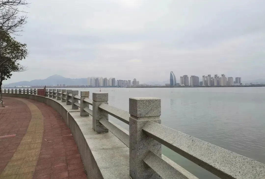 从一座天桥上穿过来就到了海边,天桥旁边还有个天后宫。 海边确实有栈道,也有几家商店,还有一个咖啡店,但并不繁华,也没什么人气。 顺着海边栈道走了一圈没有看见什么跑道,而所谓的“钻石海岸”不过是一座小区楼盘的名字。 也没有码头,高德地图上扩大范围也没有“讨大海”“讨小海”这两个码头。 直到这条栈道走完才在杂乱的店铺招牌中看到一个“长跑协会”,只是那条跑向大海的海堤跑道在哪呢?
