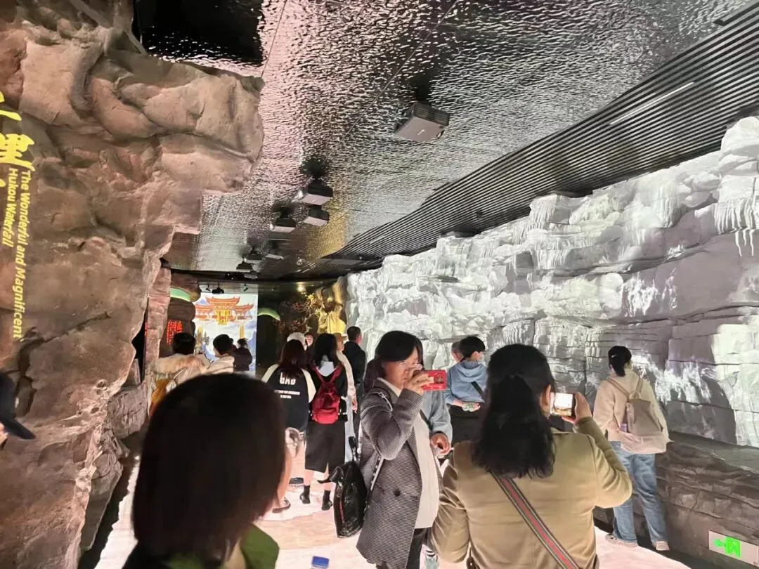游客们纷纷捕捉这“霓虹戏水”的美景