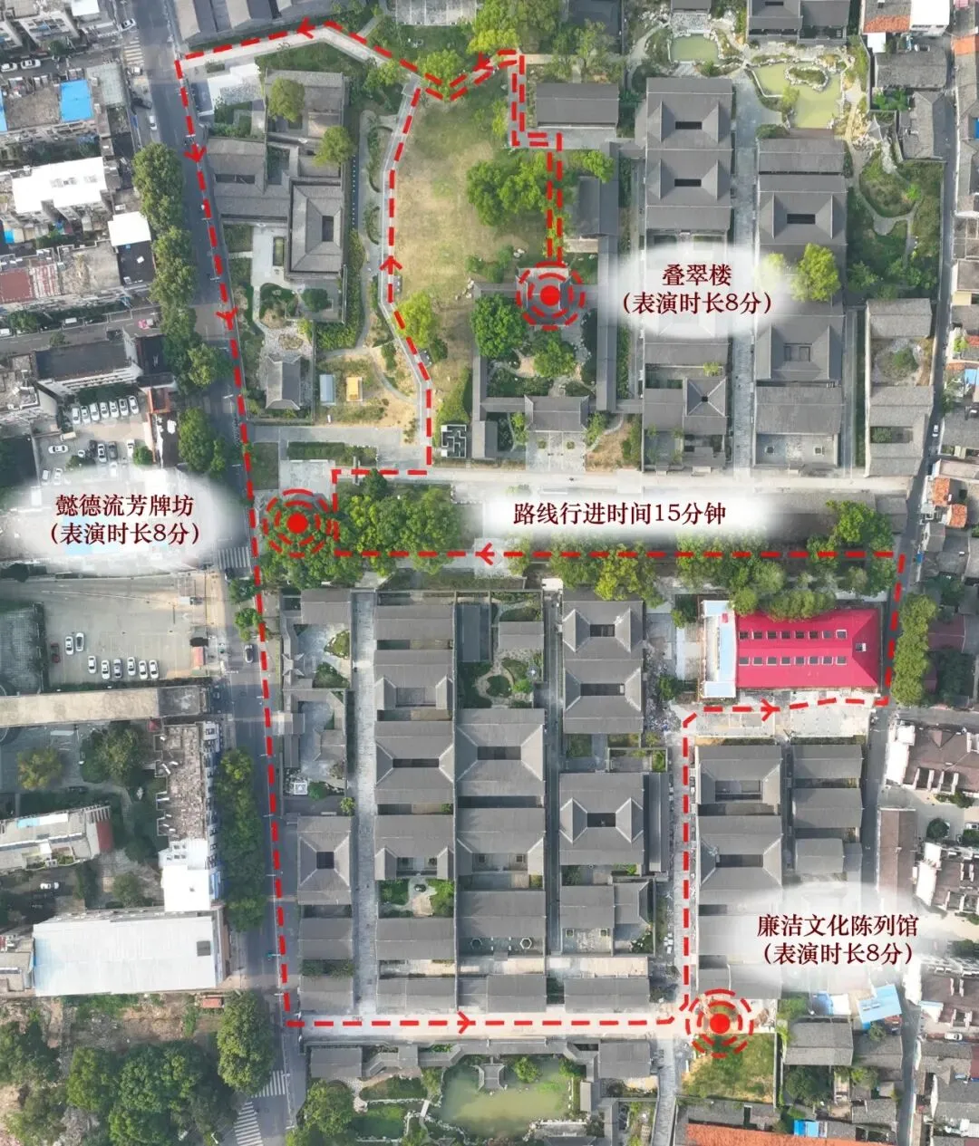 地点:景区主游览线路(途径叠翠楼、廉洁文化陈列馆、懿德流芳牌坊、六尺巷等核心景点)
