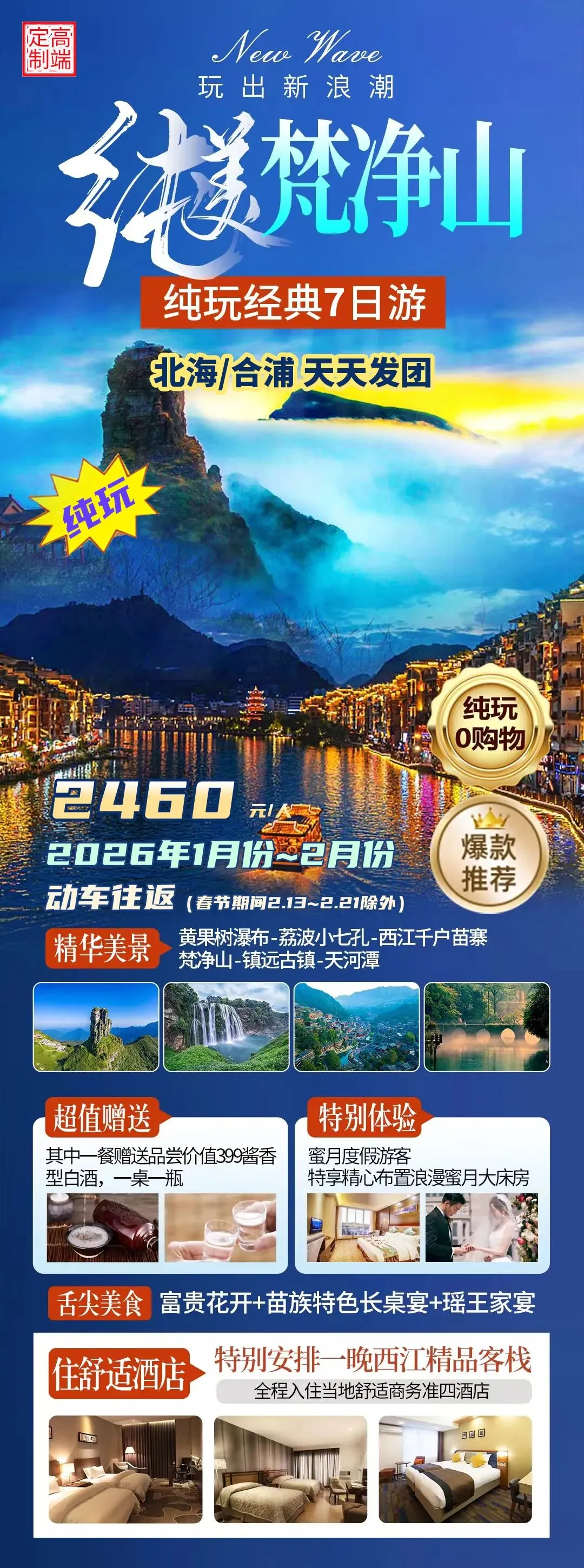 贵州旅游,纯净黄小西 6日真纯玩,2160元/人,玩出新浪潮 纯美梵净山7日 纯玩0购物,2460元/人 北海/合浦起止,天天发团