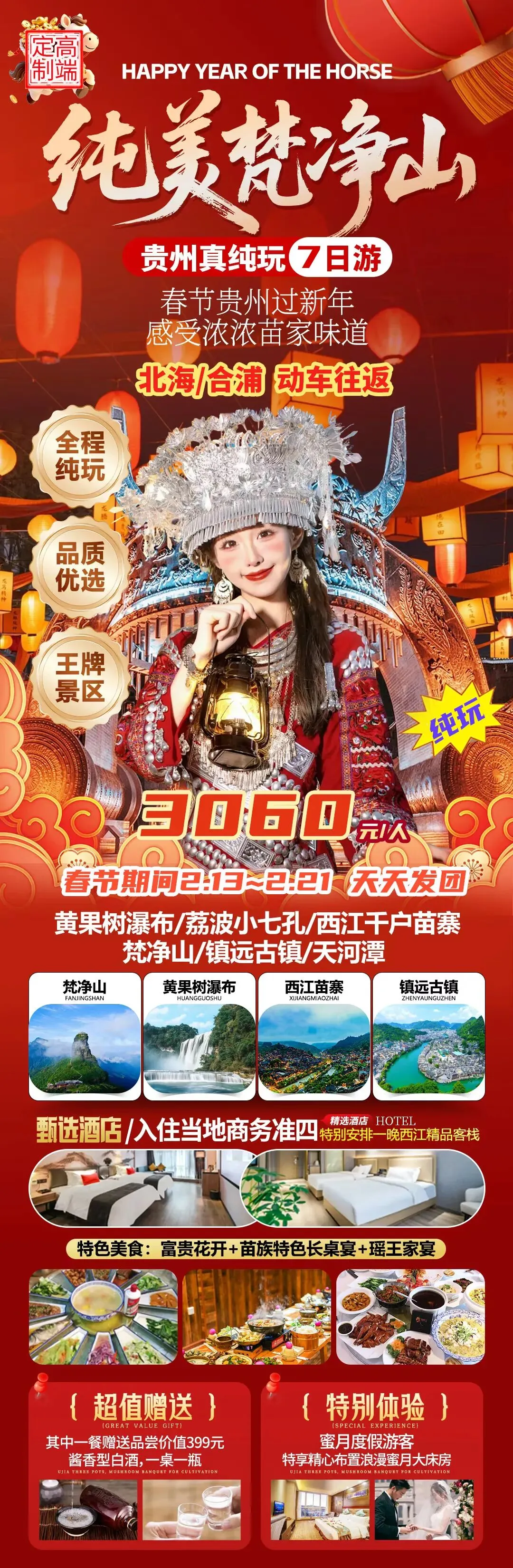 ✅ 赠价值 399 元酱香白酒,享富贵花开 + 苗族长桌宴 + 瑶王家宴舌尖盛宴