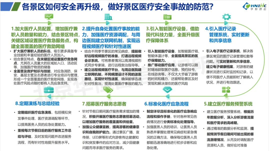 同时,景区还应重视每次节假日后的医疗服务工作总结与评估,及时发现问题并改进服务流程,而有针对性地提升服务水平。通过以上措施,可提高景区医疗服务水平、医疗服务的覆盖面和应急响应能力。提升景区的客户满意度。