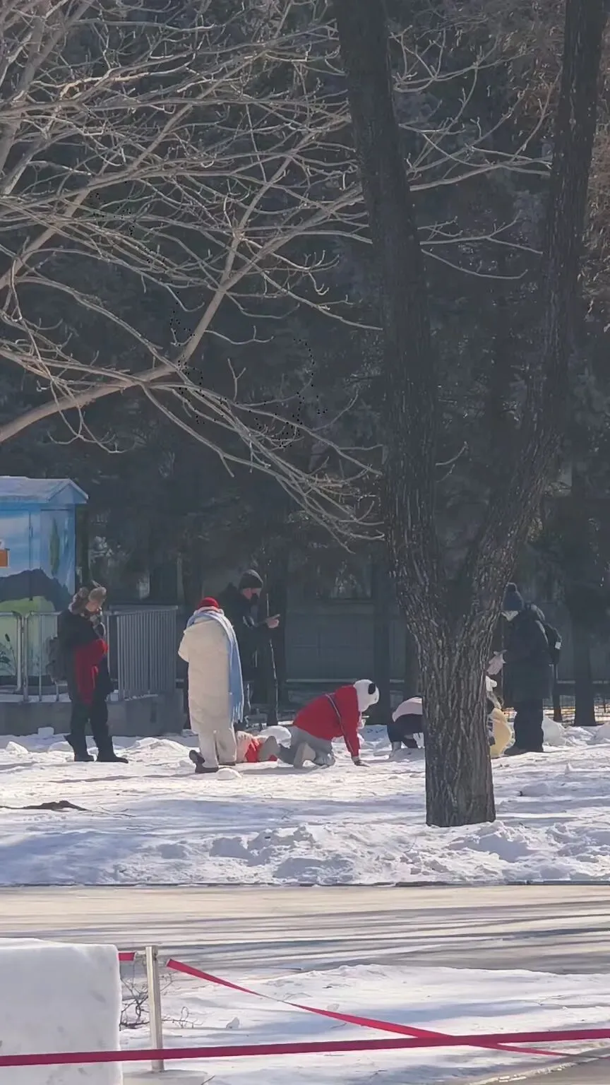 景区内的大滑冰滑梯旁,俄罗斯的留学生安娜和朋友排着队,期待着体验冰滑梯的乐趣。“之前在网上刷到过冰滑梯的视频,今天终于能亲自体验了,太期待了。”而在园区的树林里,不少孩子正尽情享受着冰雪带来的快乐:来自广州的小游客乐乐和小伙伴们在雪地里翻滚嬉戏,打雪仗的笑声穿透林间,为冬日的景区增添了不少生机。