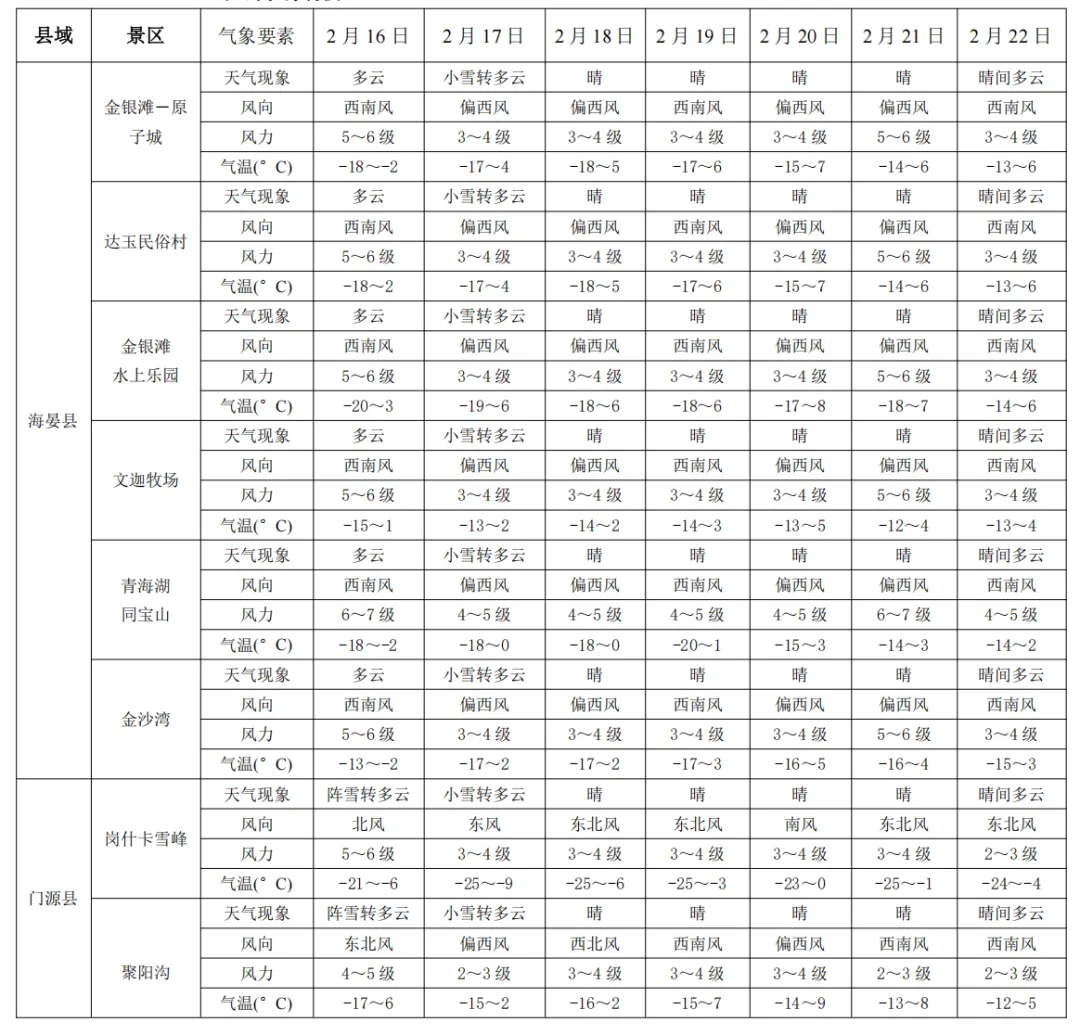 春节假期正是出门“浪”的好时候~ 不管你是想看雪、吹风、晒太阳, 还是想拍大片、发朋友圈、晒定位, 海北的景区已经准备好“迎客模式”啦! 📸✨ 这不,海北州气象局为大家送上一份 春节出游“天气锦囊” 让你玩得安心、拍得美、发得爽~👇 春 具体预报
