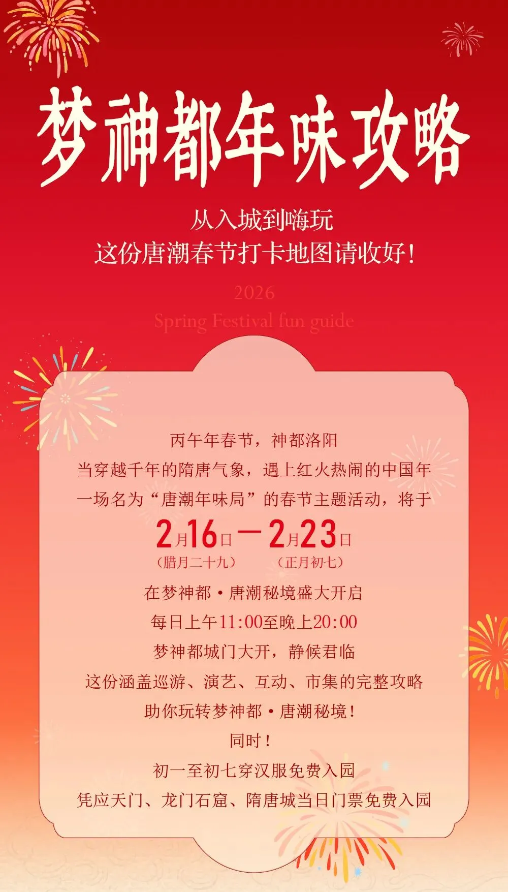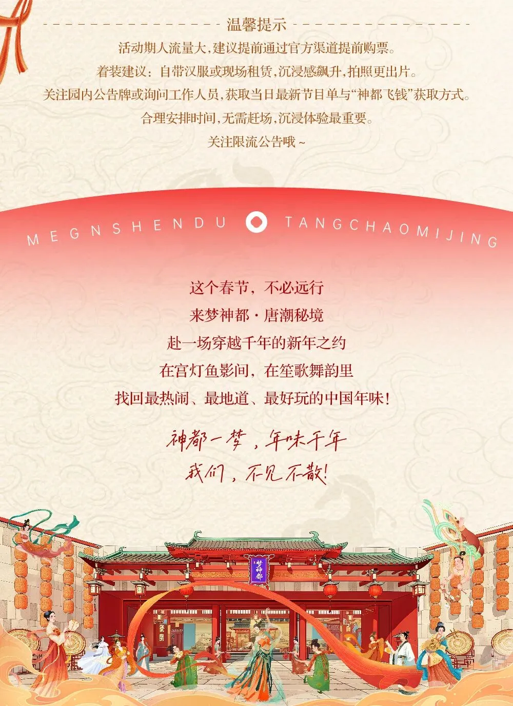 穿汉服免费入园、凭这几个景区门票免费入园…这个春节,就来梦神都·唐潮秘境!过一个不一样的唐潮年味局!