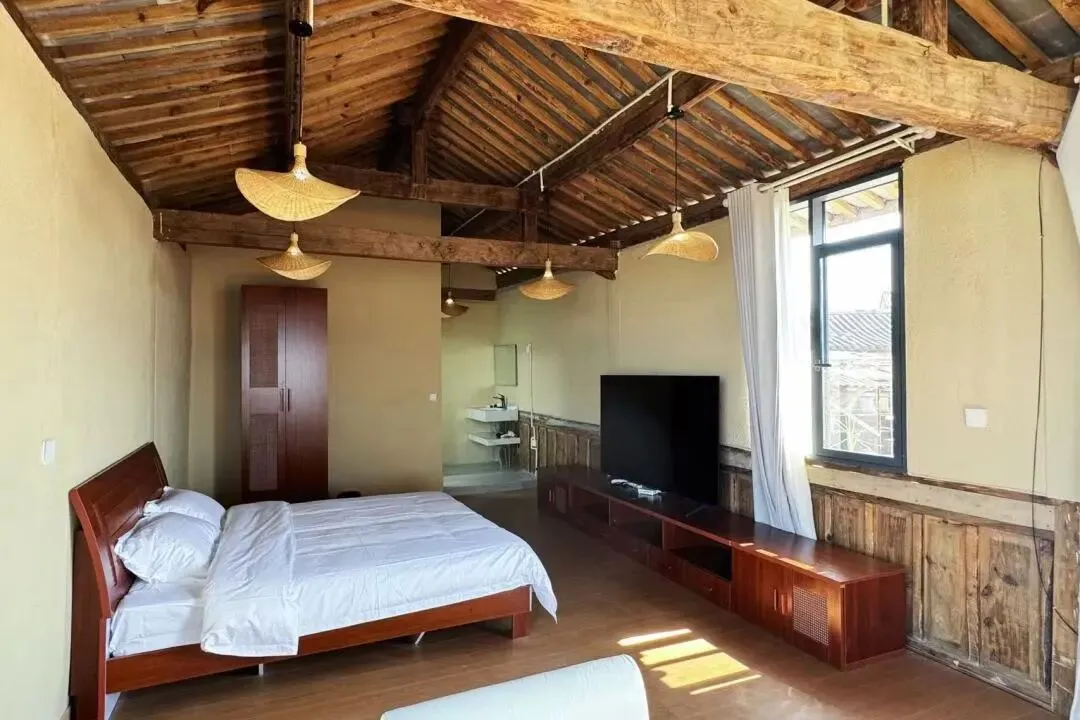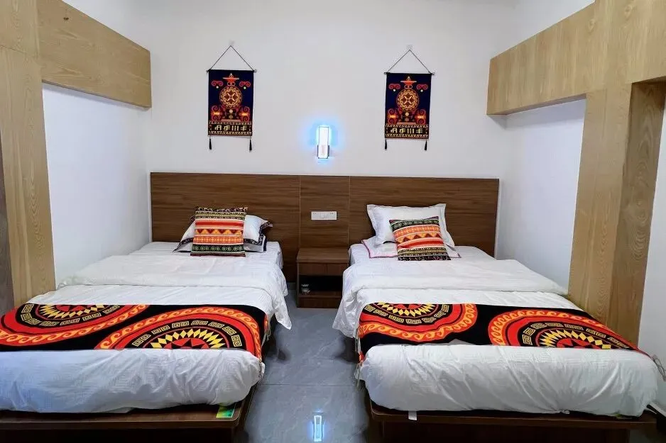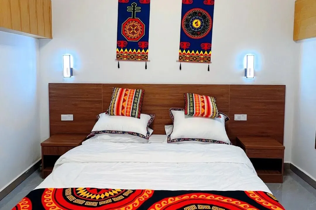 家庭出游的宝子们不要错过这间自带小院子的套房呀!两室一厅两卫的布局,既保证了家庭成员各自的私密空间,又提供了宽敞的公共活动区域。双床房和大床房满足多种需求,满满民族风情又不失温馨,每一处细节都透露着对生活的热爱。还可以在庭院里进行自助烧烤,尽情感受田园风情噢!(注:食材和煤炭需自备)