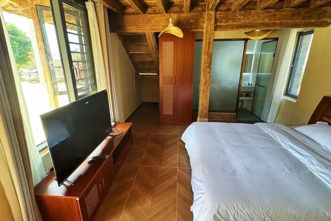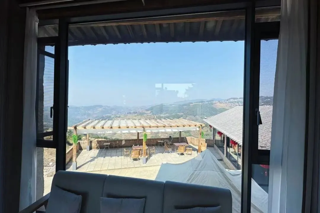 超大落地窗框住克曼梯田四季画卷:晨起看云雾在稻浪间翻涌,日暮赏夕阳为群山镀金边。夜幕降临时,躺在床上数星星—克曼上的银河带,正是心中所向~