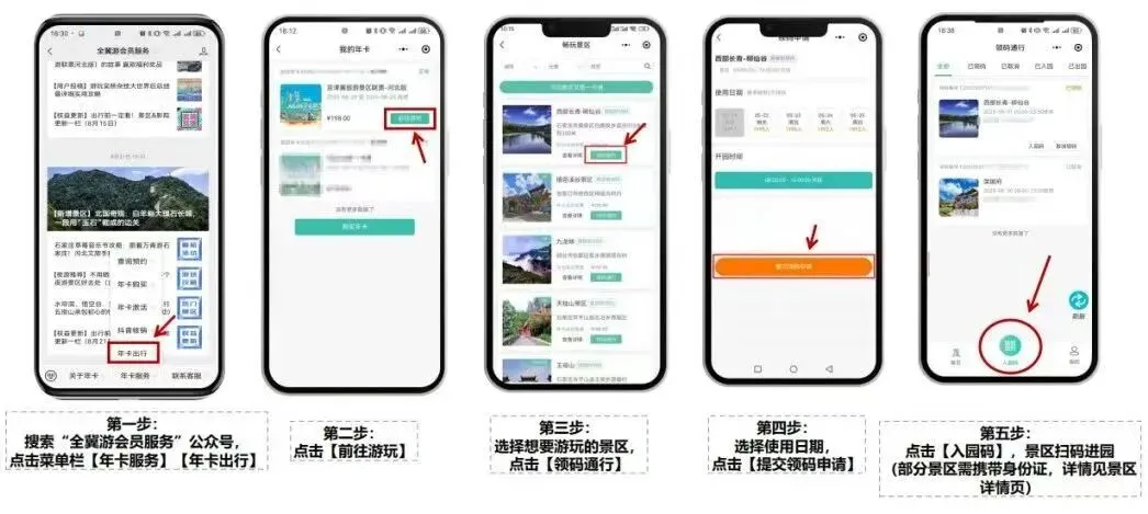 1.所有景区都需要领码后出行,部分景区如白石山、娲皇宫、荣国府、1947、柳仙谷、邢台大峡谷、崆山白云洞、枫水湾温泉、云慢疏林大草原等(目录不断调整中),必须在前一天18:30之前领码预约。出行前一定要养成点击景区详情查看并领码后出行。
