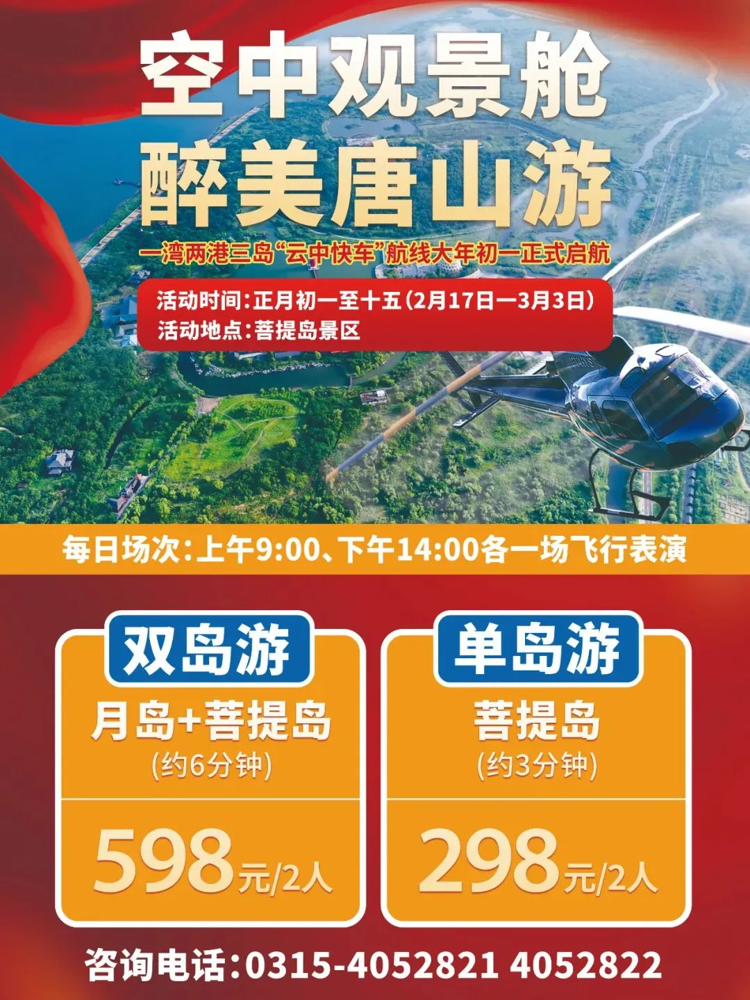 新春伊始,万象更新。备受广大游客期待的唐山旅游岛全新文旅体验项目——「云中快车」空中游览航线,将于明日(大年初一)正式盛大启幕。