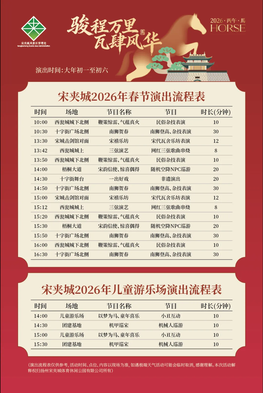本次宋夹城新春盛会以 “宋代市井回忆杀+宋朝新玩潮玩风” 双主线贯穿,从大年初一至初六,每天都有不同亮点: