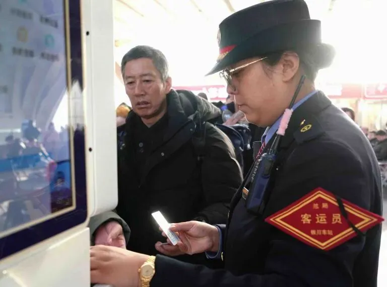 面对汹涌的人潮,车站里却忙而不乱。为应对客流高峰,银川火车站全面开启安检通道,并在实名制验证口、检票口增派专人引导,确保旅客快速进站。一群身着醒目服装的青年志愿者活跃在车站各处,主动为有需要的旅客搬运行李,成为站内一道温暖的风景线。