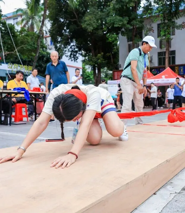 活动现场参与竹竿舞、拉乌龟等民俗互动