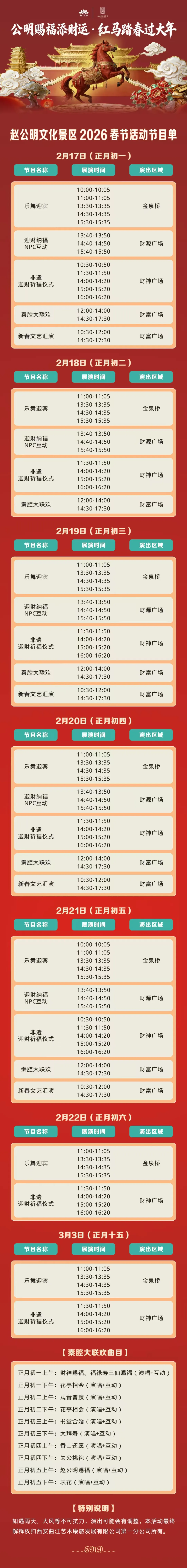 除夕快乐丨恭喜发财!请查收赵公明文化景区2026春节活动节目单!