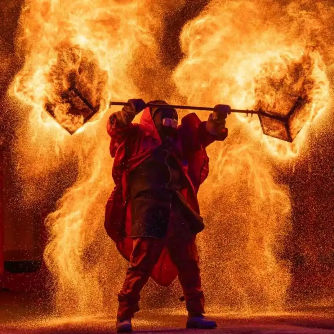 铁水一泼,繁星坠地金花一落,流光溢彩