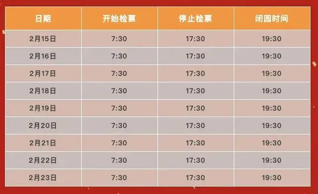 • 延长开放:2月15日(腊月二十八)、2月17日至2月23日(正月初一至初七),每日延长开放2.5小时,