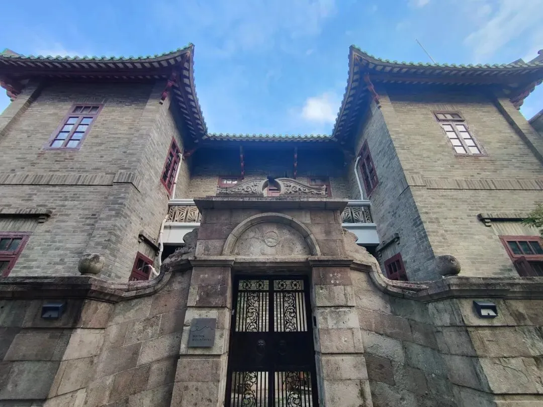 俗称“日本楼”,为村民冯佐屏赴日求学后携日籍妻子回乡所建。楼高两层,平面呈倒“凹”字形,院墙及大门采用红砂岩砌筑,融合了拱券、涡卷等日本近代建筑风格元素。抗日战争时期,其日籍女主人的身份曾对保护村庄免遭战火起到了一定作用。